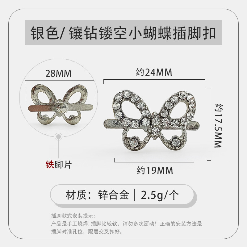 A2466-Серебряная алмазная полая маленькая пряжка/кусок в виде бабочки