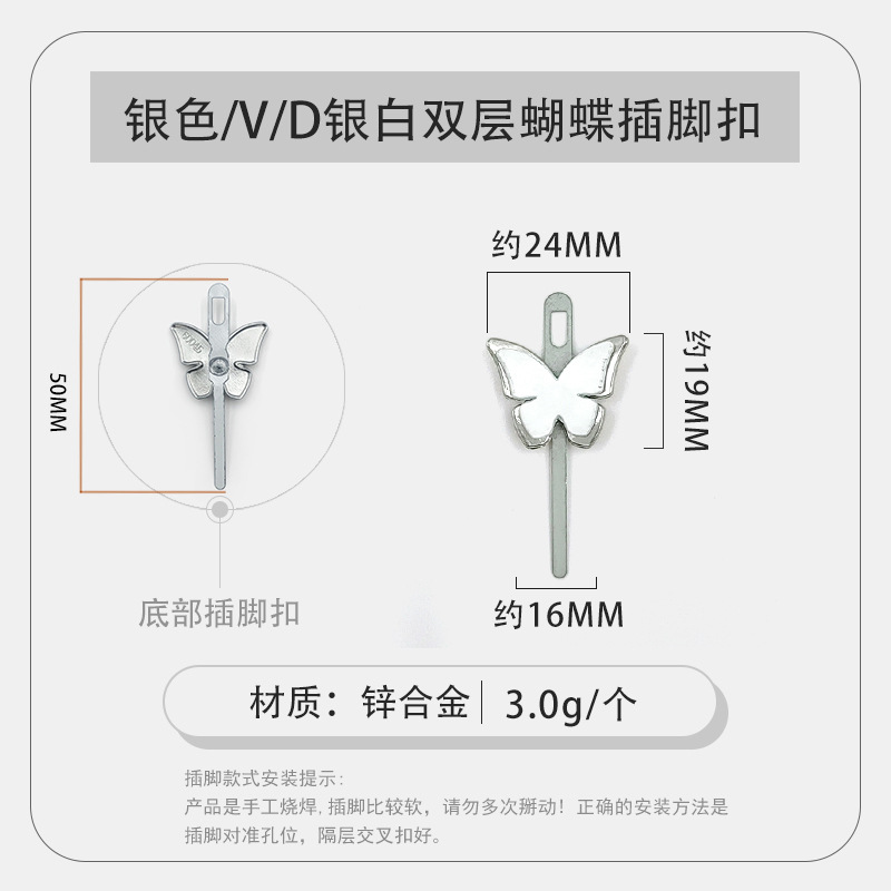A1040-Серебряный V-D серебристо-белый двухслойная бабочка с пряжкой/шт