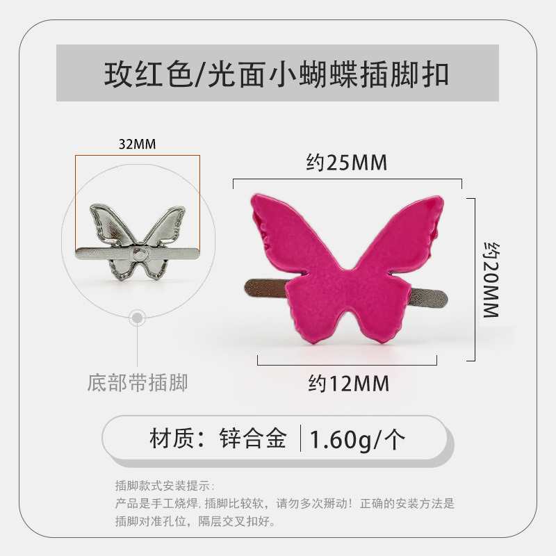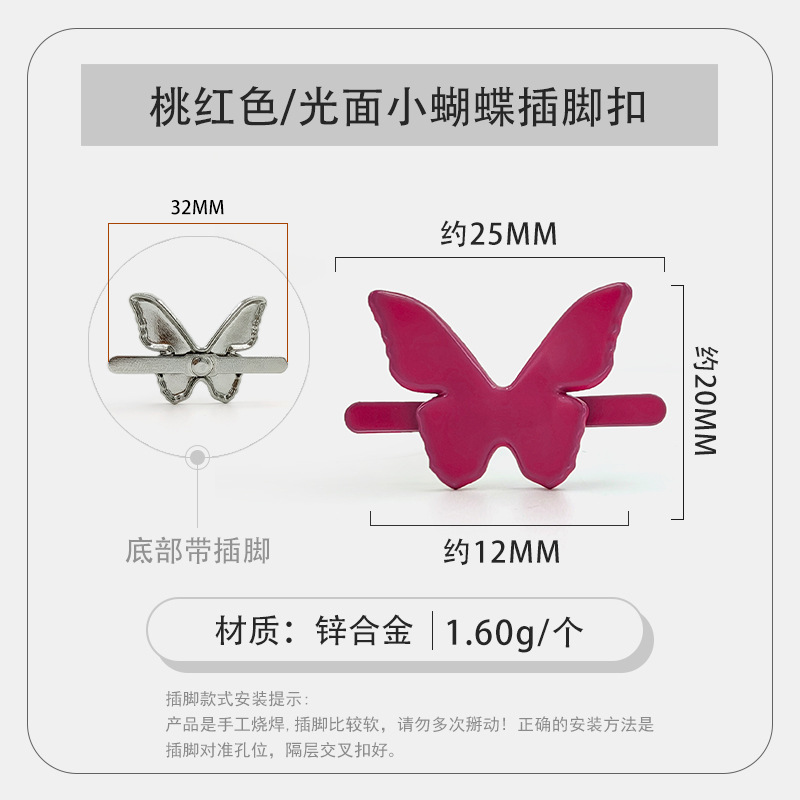A1036-Розовый глянцевый маленькая бабочка пряжка/шт