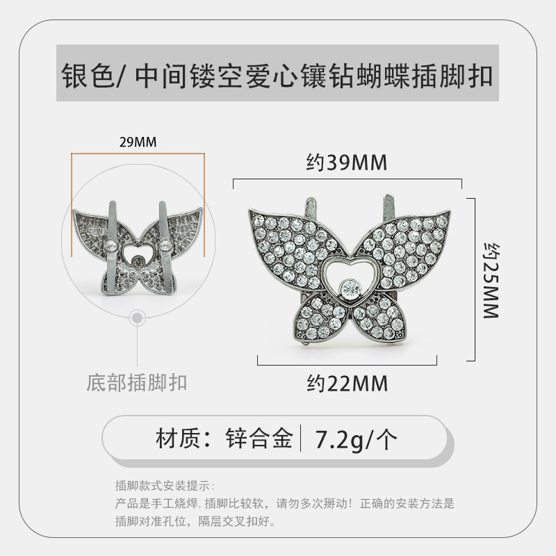 A1014-Серебряная посередине Полая любовь Алмазная бабочка пряжка/шт