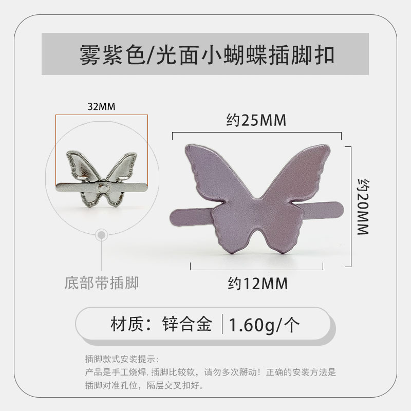 A1038-Туман фиолетовый глянцевый маленькая бабочка пряжка/шт