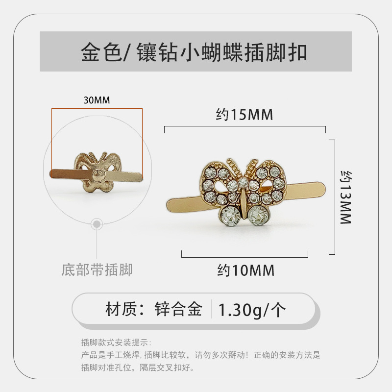A1056-Золотой алмаз маленькая бабочка пряжка/шт