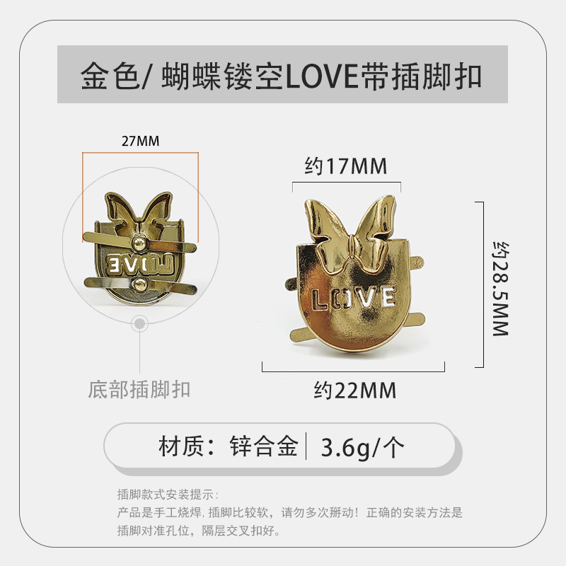A2038-Золотая бабочка полые love с пряжкой/шт