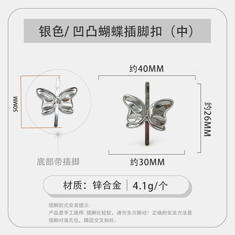 Серебряная бабочка, полная сверлильный лист, застежка/шт