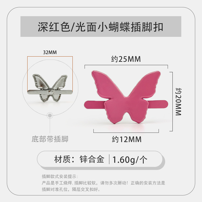 A1035-Темно-розовый глянцевый маленькая бабочка пряжка/шт