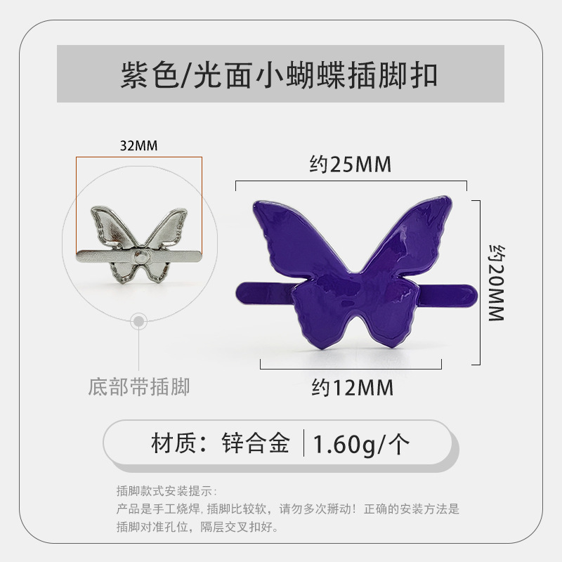 A1037-Фиолетовый глянцевый маленькая бабочка пряжка/шт