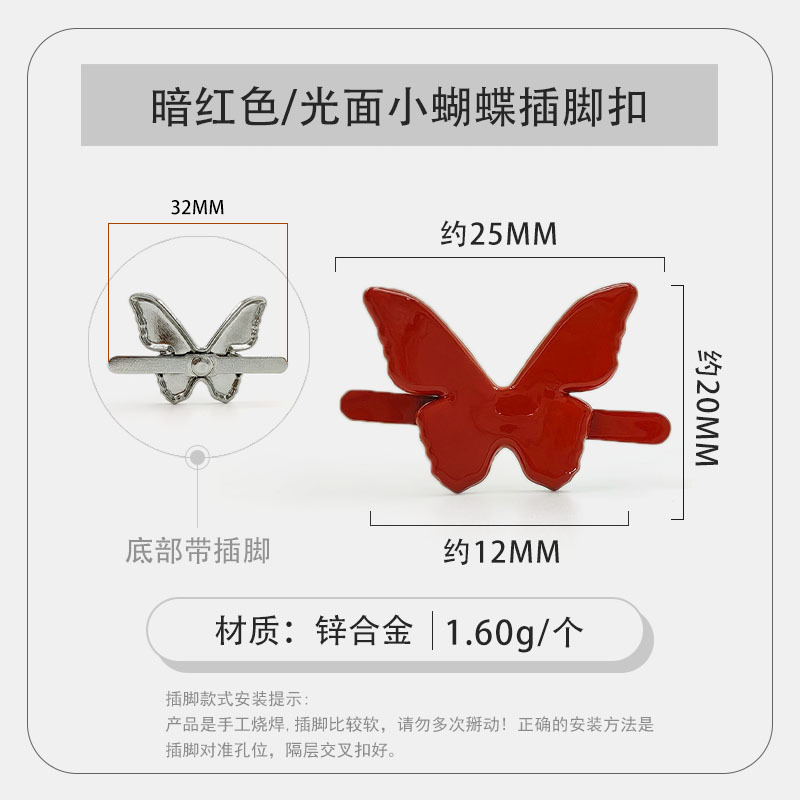 A1023-Темно-красный глянцевый маленькая бабочка пряжка/шт
