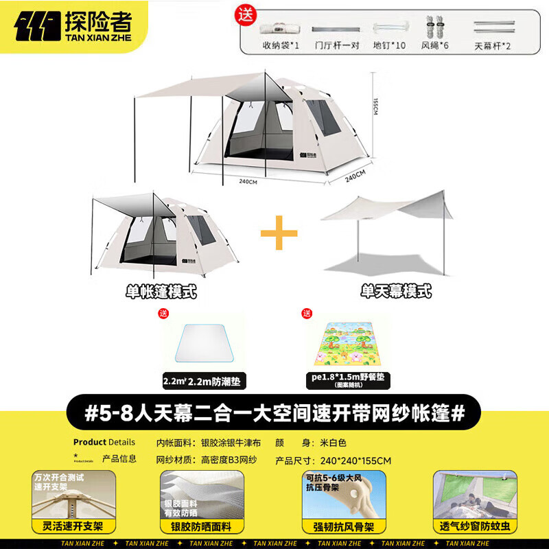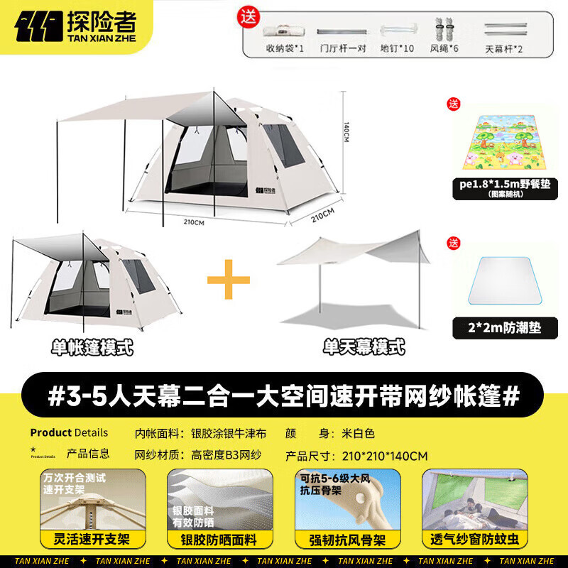 Главная страница > Палатка Explorer для кемпинга, портативная, складная, всепогодная, утолщенная, полный комплект автоматического оборудования для кемпинга на открытом воздухе