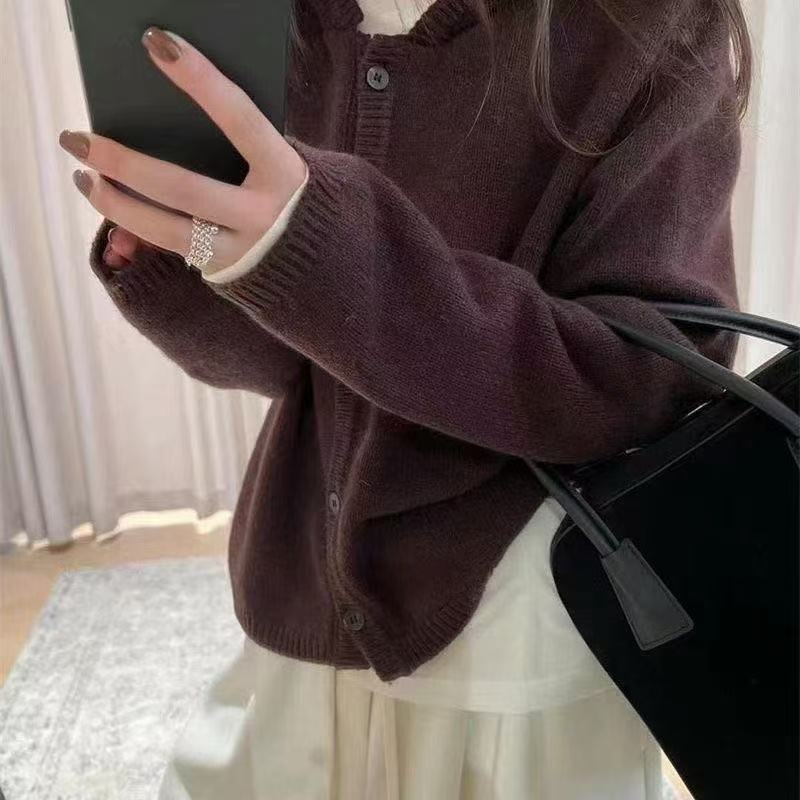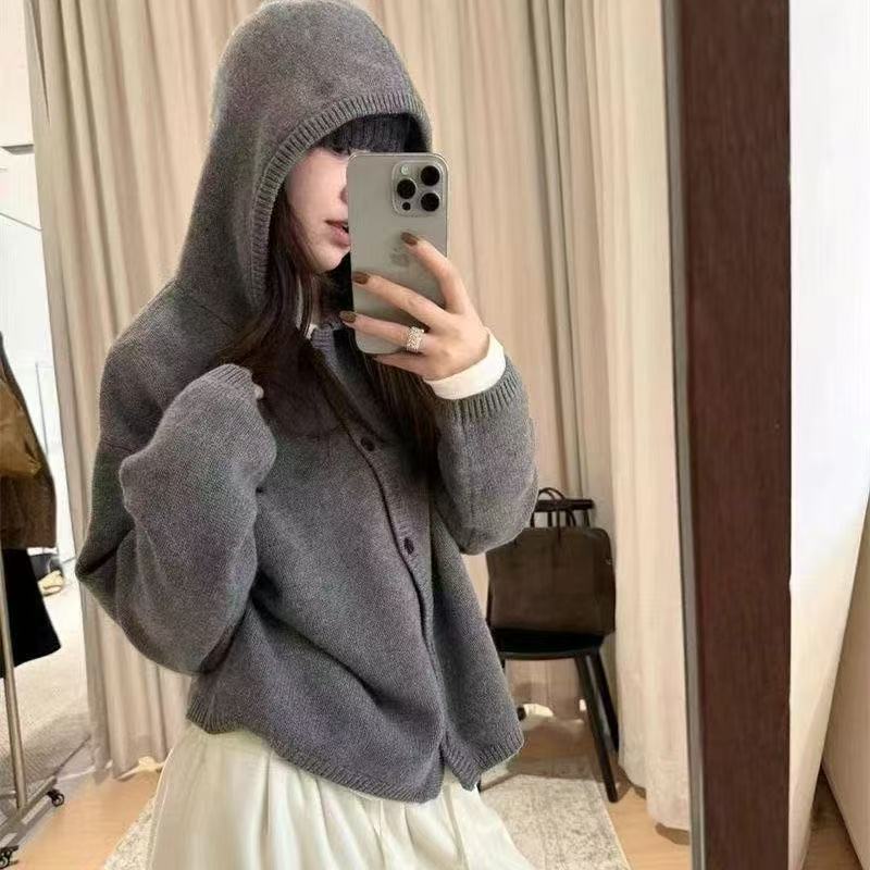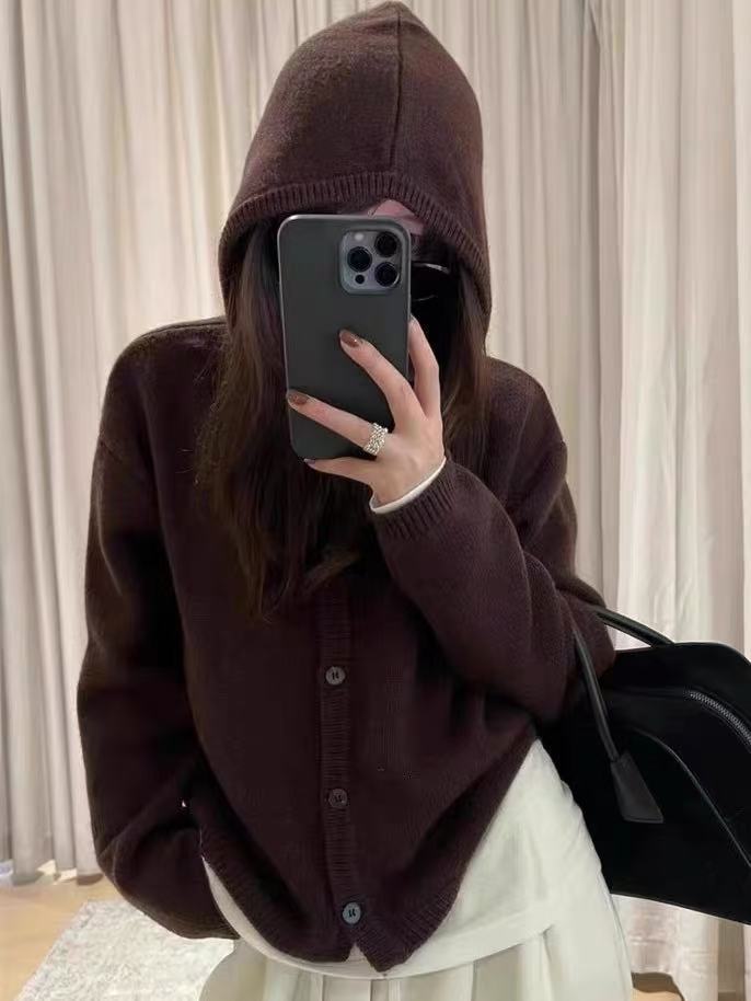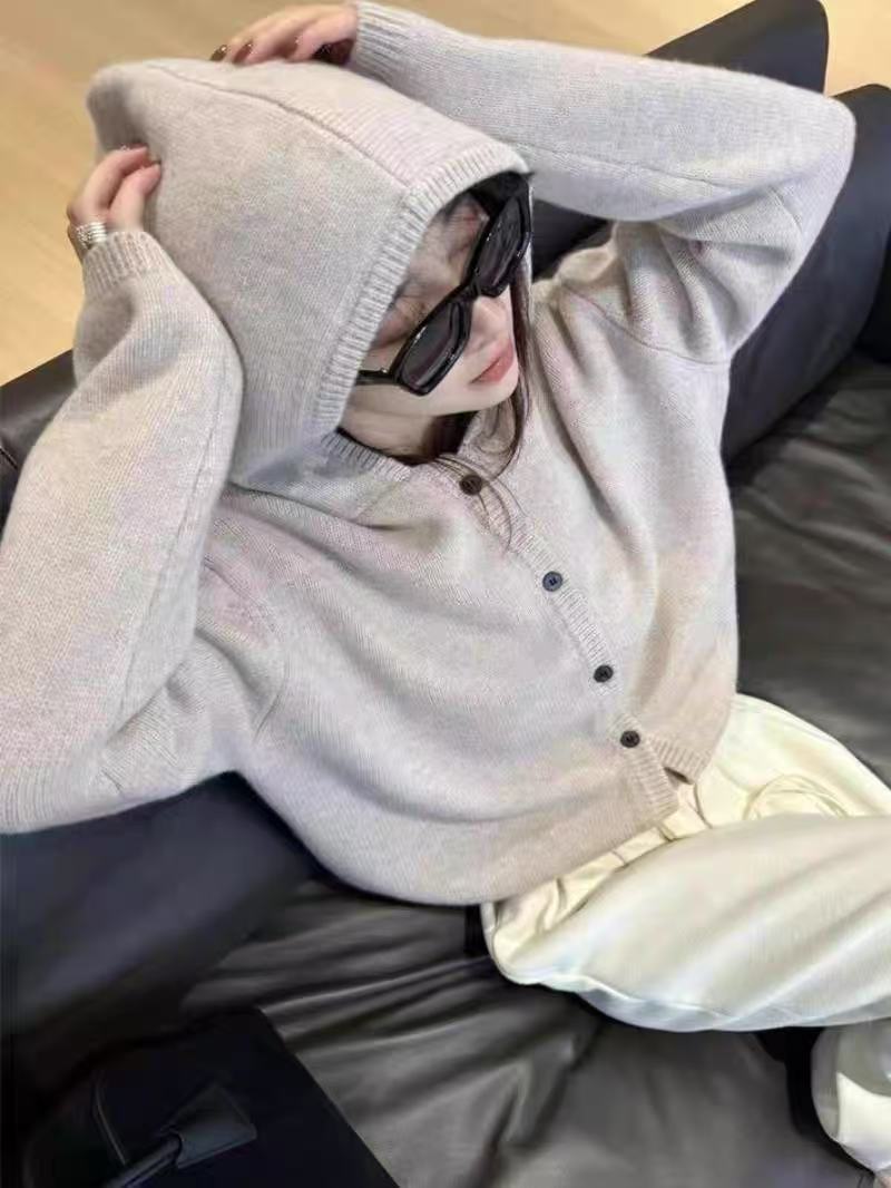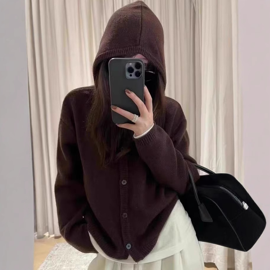 Главная страница > Женский вязаный кардиган в стиле ретро, свободного кроя, с капюшоном, однобортный, однотонный, для внешней торговли.