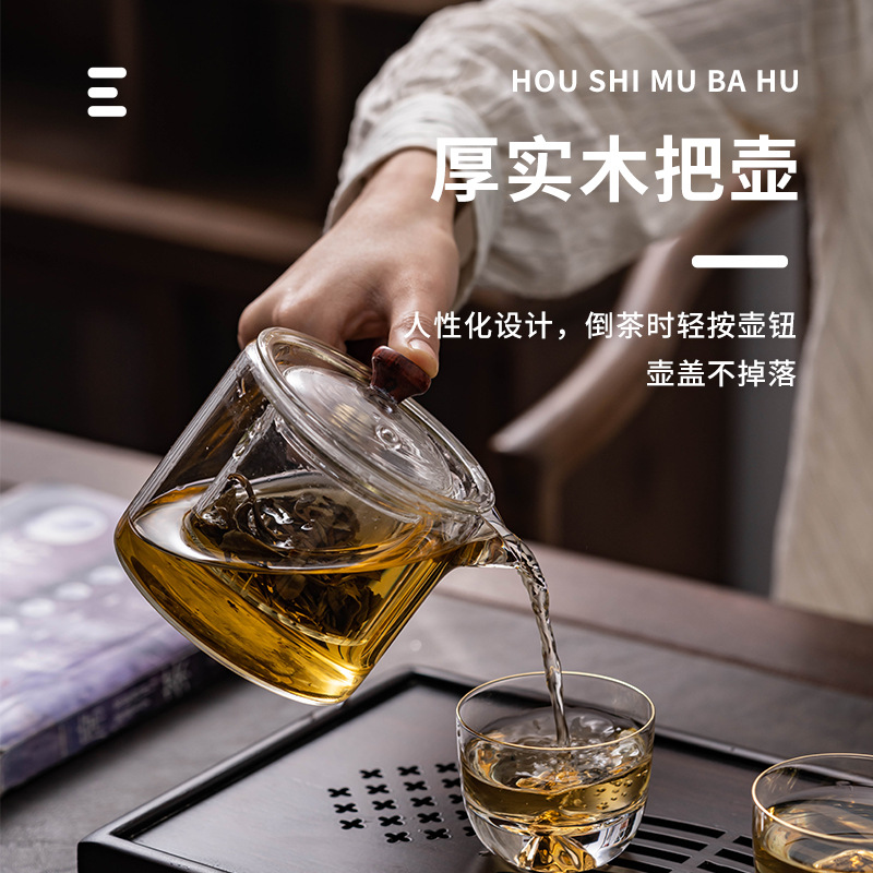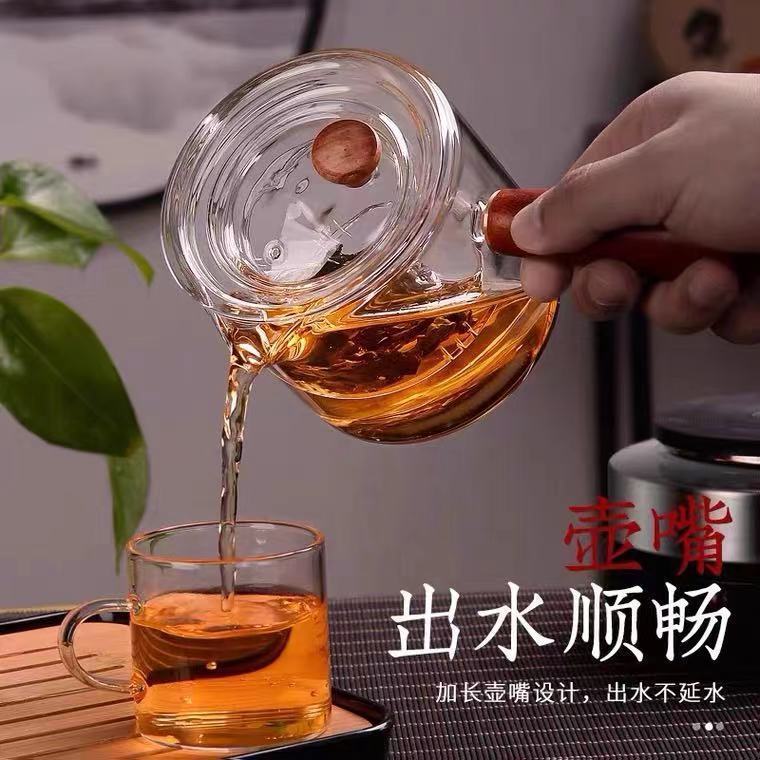 Чайник стеклянный с боковой ручкой и фильтром для заваривания чая, утолщенный и термостойкий, интуитивно понятный чайник-набор с разделением чая и воды.