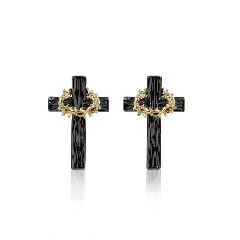 Оригинальный дизайн нишевые крест свитер цепи черное золото высокого уровня чувство нейтральный стиль хип-хоп личность ожерелье женщина