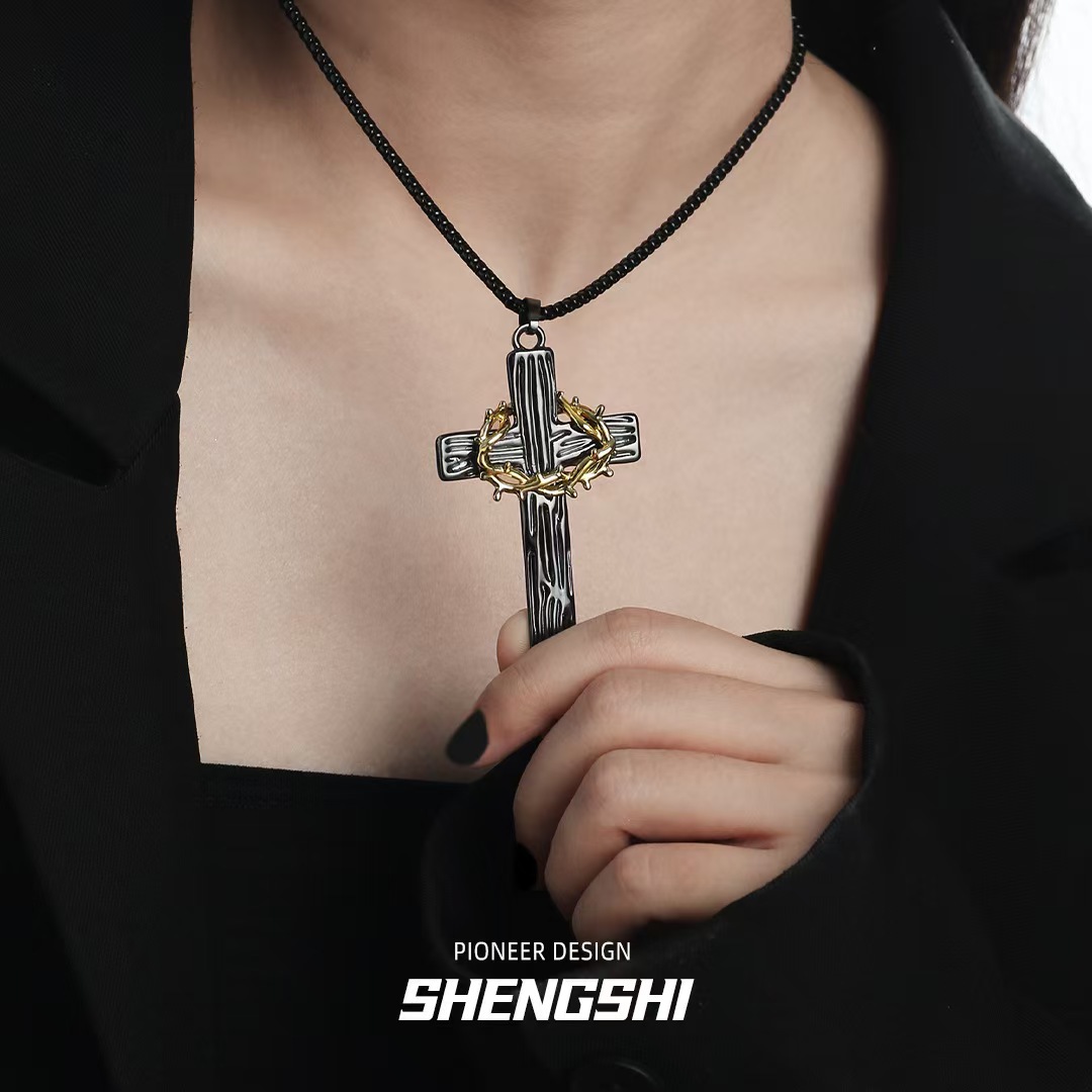 Главная страница > Оригинальный дизайн нишевые крест свитер цепи черное золото высокого уровня чувство нейтральный стиль хип-хоп личность ожерелье женщина