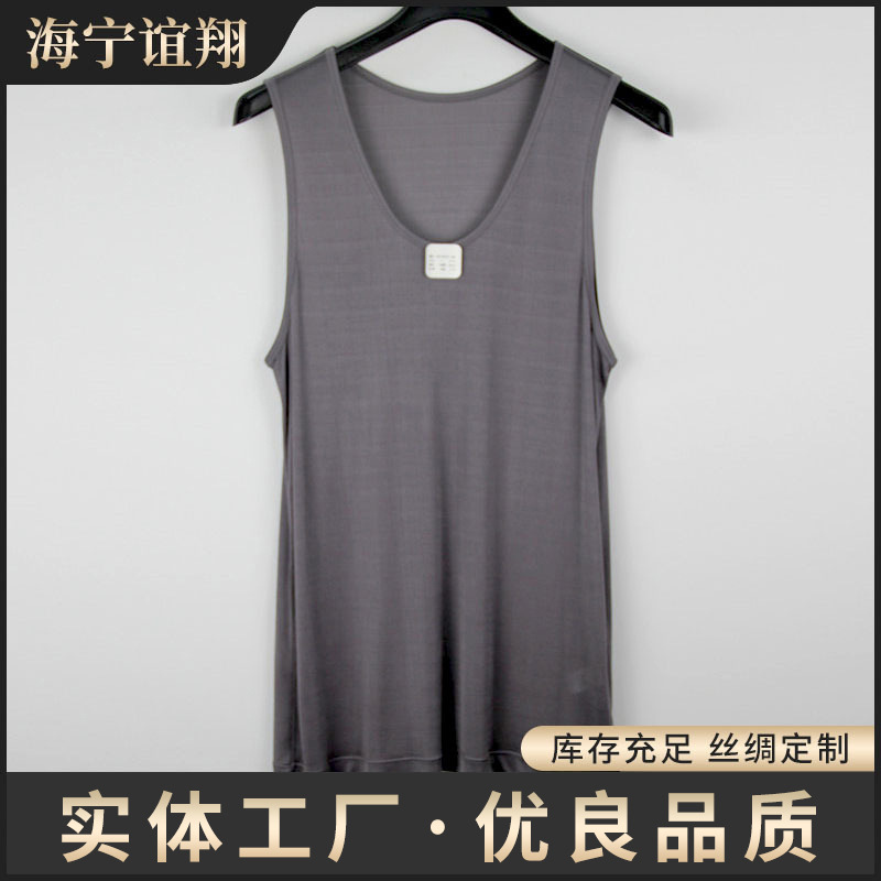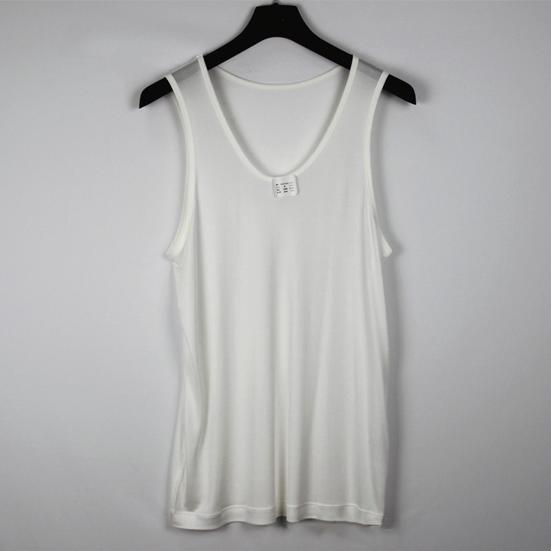 Главная страница > Мужской жилет Новый шелк тутового дерева с круглым вырезом Летний тонкий вязаный дышащий базовый жилет больших размеров Сплошной цвет Верхняя одежда Нижняя рубашка