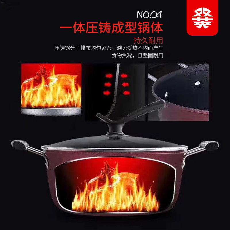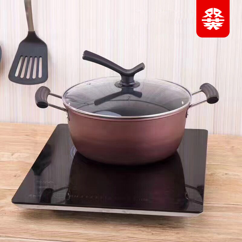 Набор китайской красной посуды, комплект из трех предметов, красочные бытовые антипригарные кастрюли, суповая кастрюля, сковорода, сковорода с плоским дном, набор кухонной утвари, набор посуды.