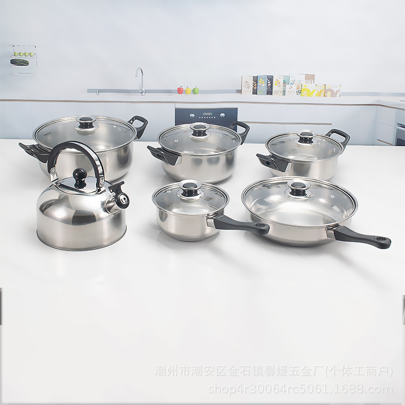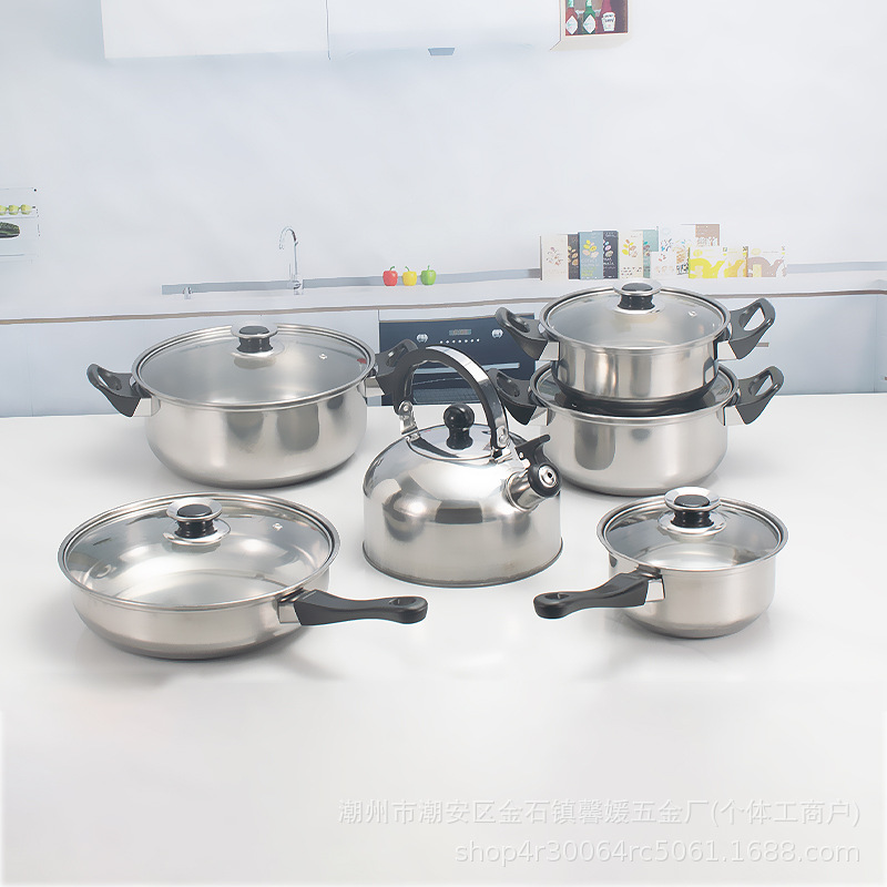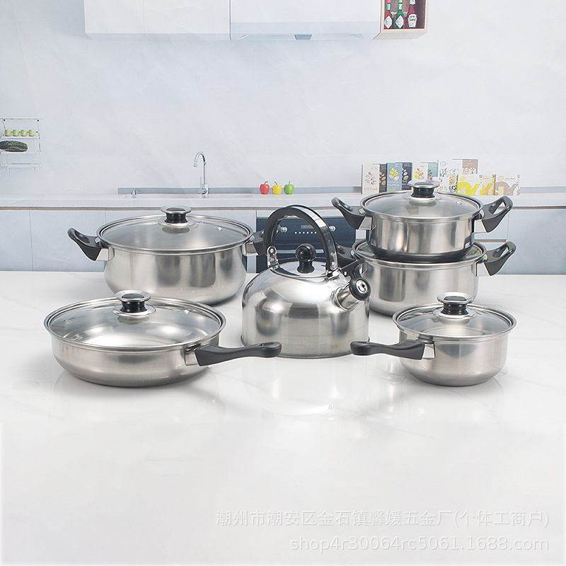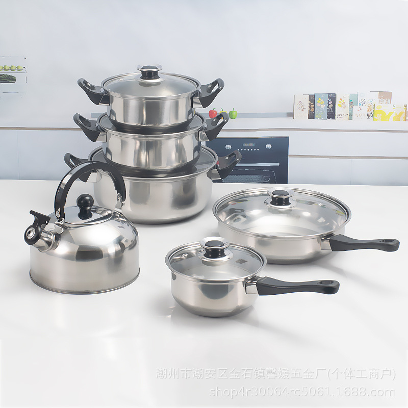 Трансграничная кастрюля из нержавеющей стали с черной ручкой