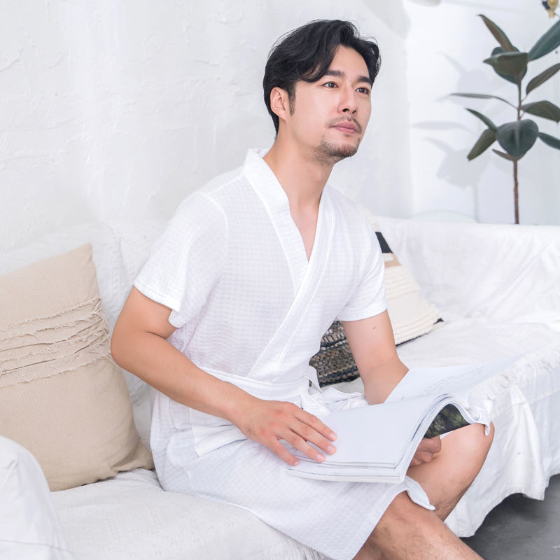 Главная страница > Пара халатов в стиле юката для женщин, длинная весенне-осенняя тонкая модель, мужская ночная рубашка большого размера для отеля, впитывающая летняя трансграничная одежда