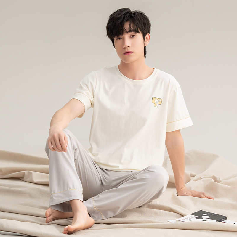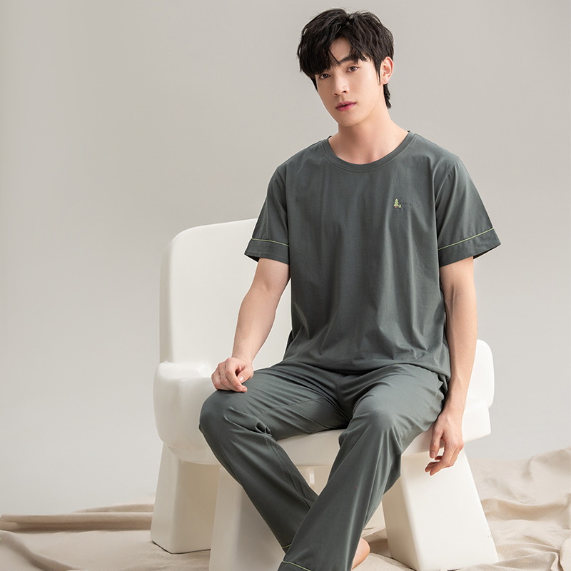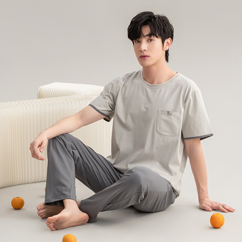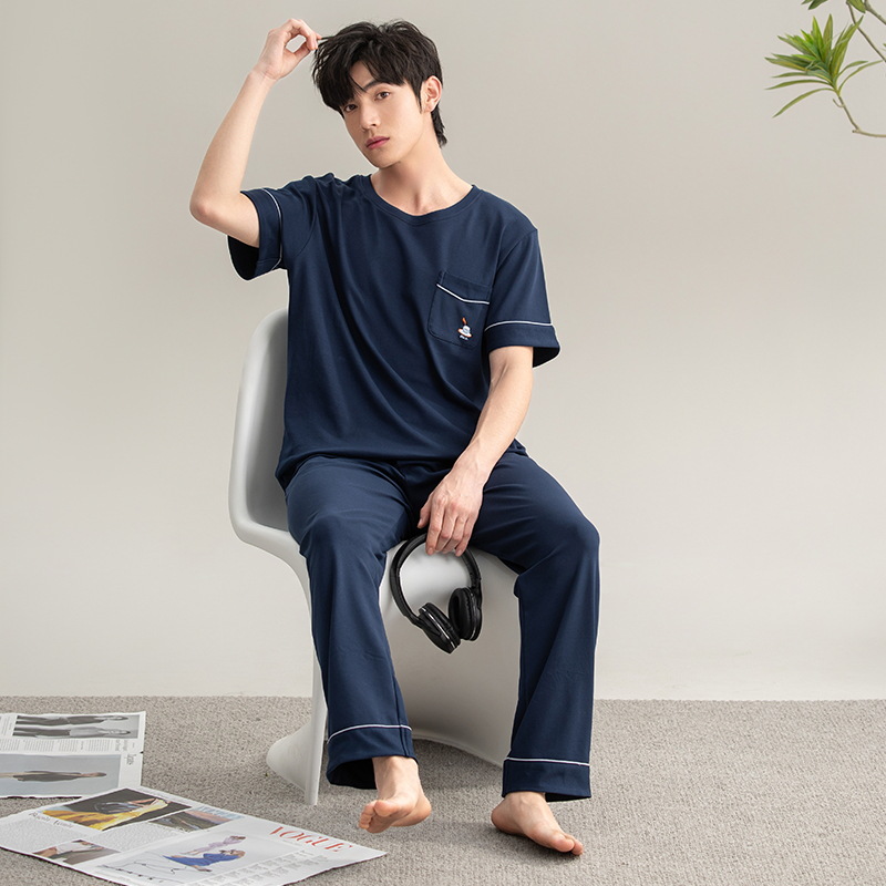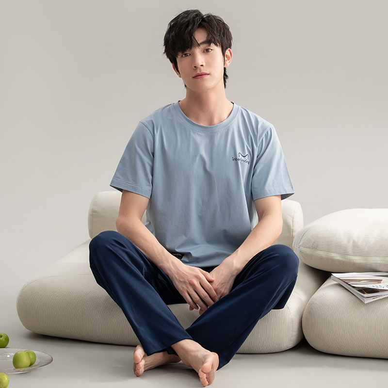 Главная страница > Мужской пижамный комплект: новая летняя хлопковая пижама с коротким рукавом и длинными брюками, тонкий, повседневный, для молодежи, для дома, летний