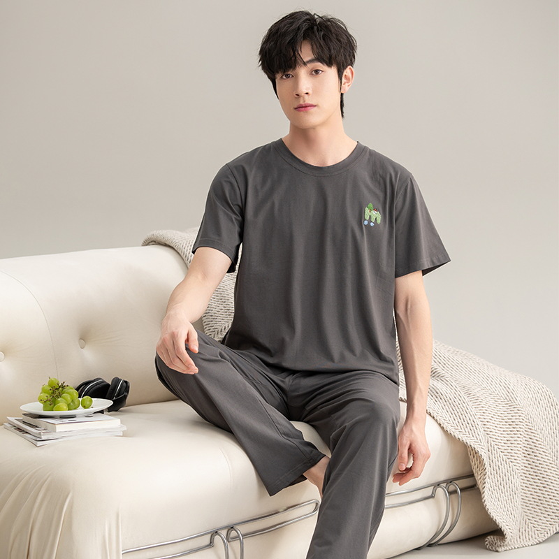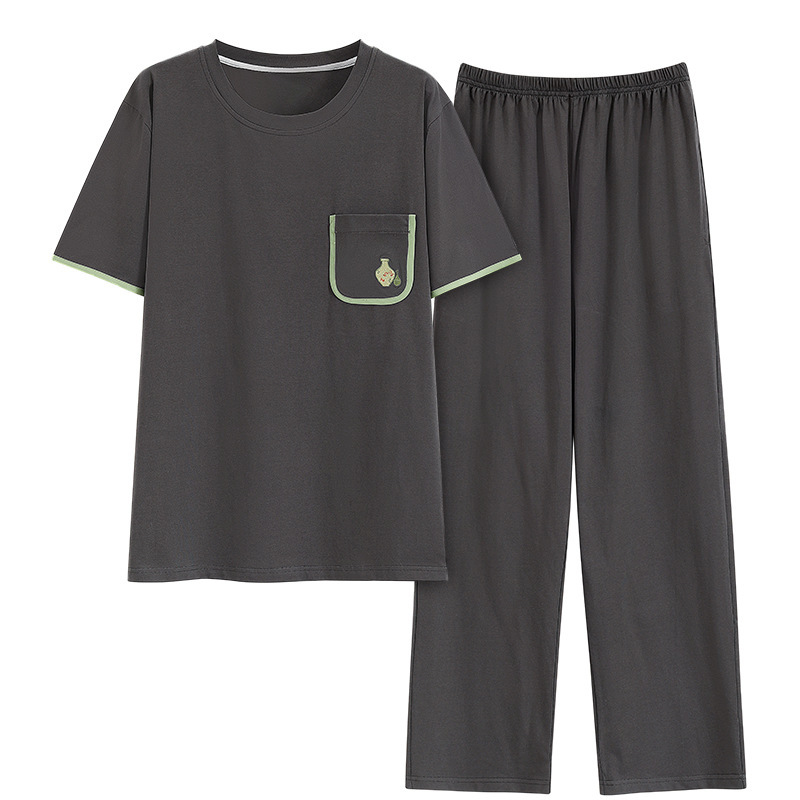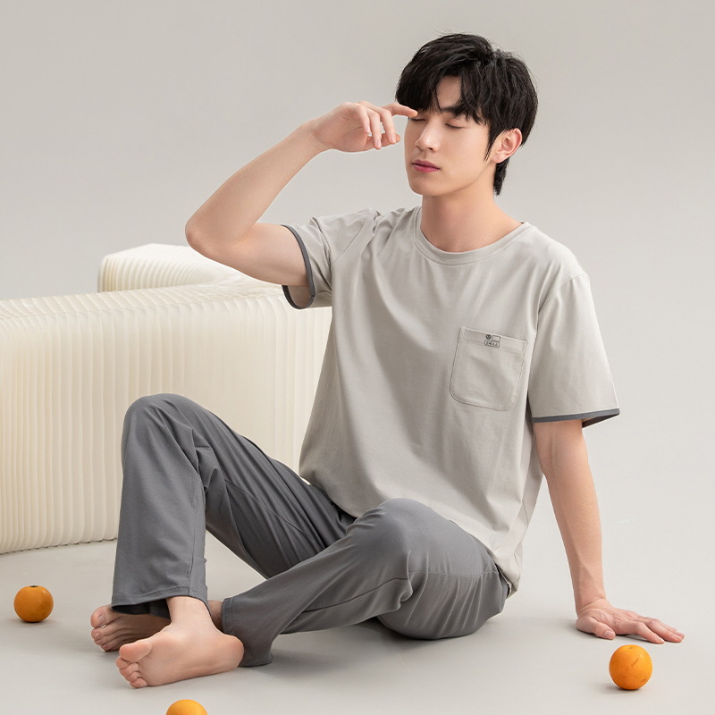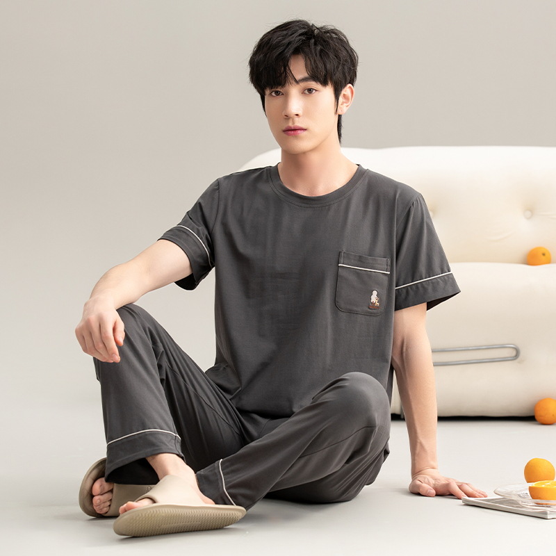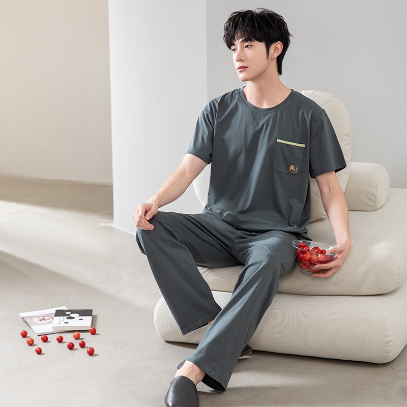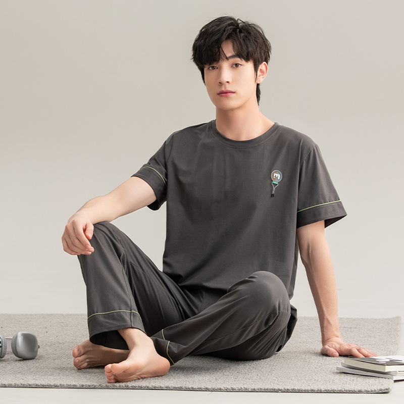 Главная страница > Мужской пижамный комплект: новая летняя хлопковая пижама с коротким рукавом и длинными брюками, тонкий, повседневный, для молодежи, для дома, летний