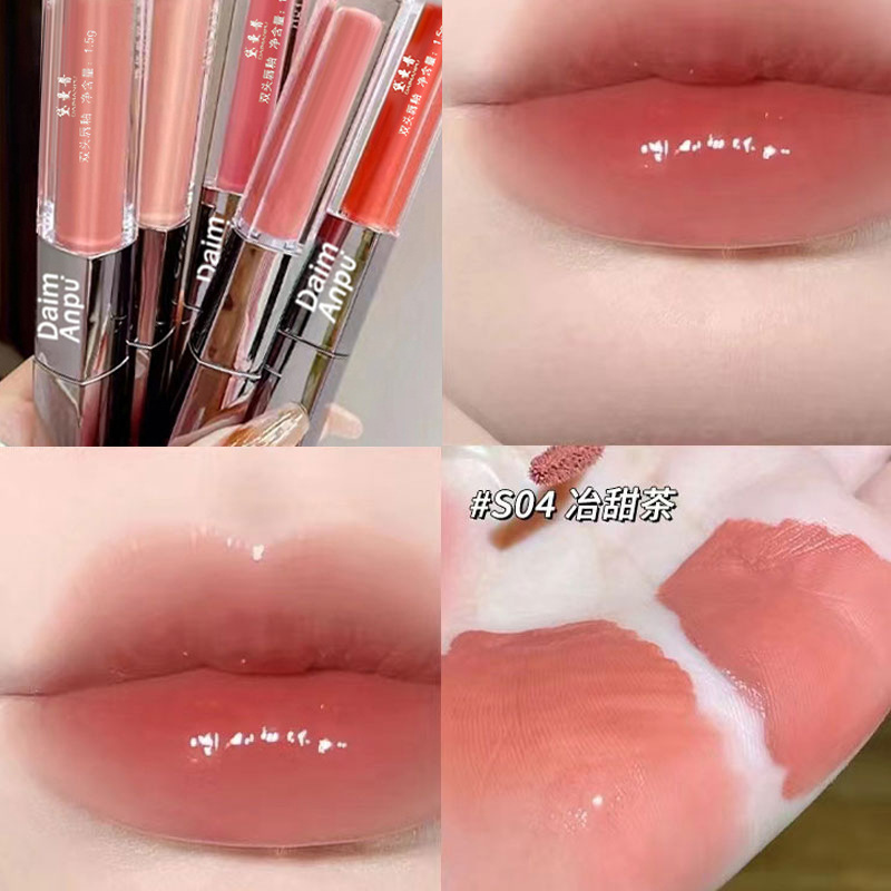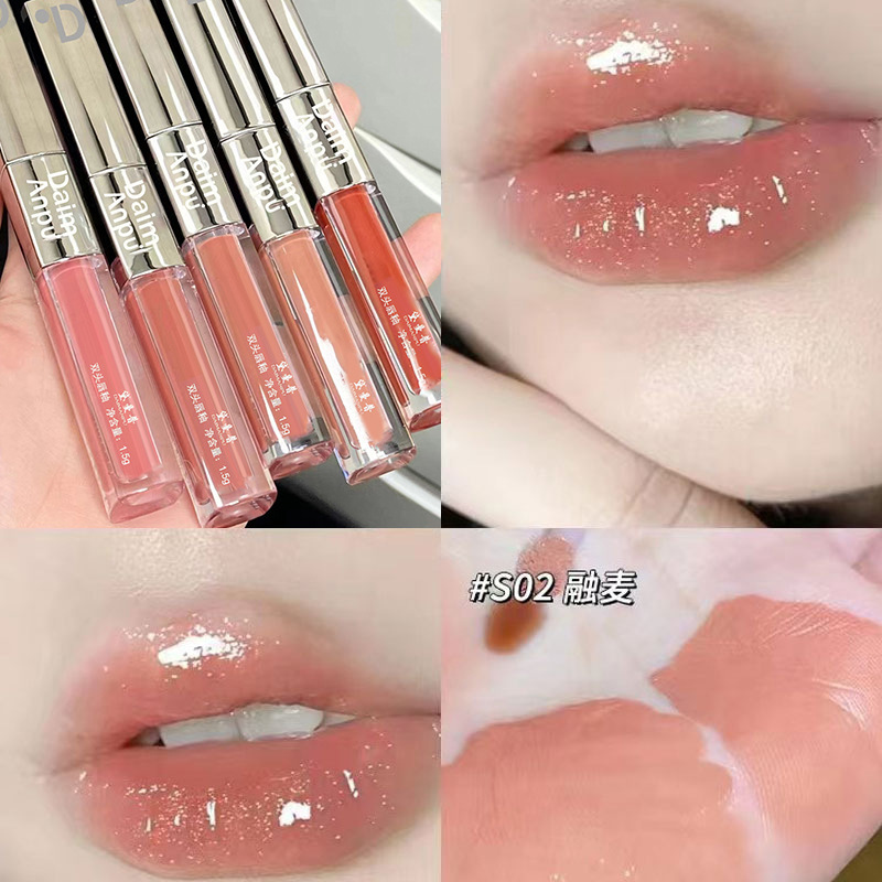 DAIMANPU двусторонняя глазурь для губ, зеркальная водно-глянцевая губная помада с антипригарным покрытием, увлажняющая стеклянная помада для губ, блеск для губ
