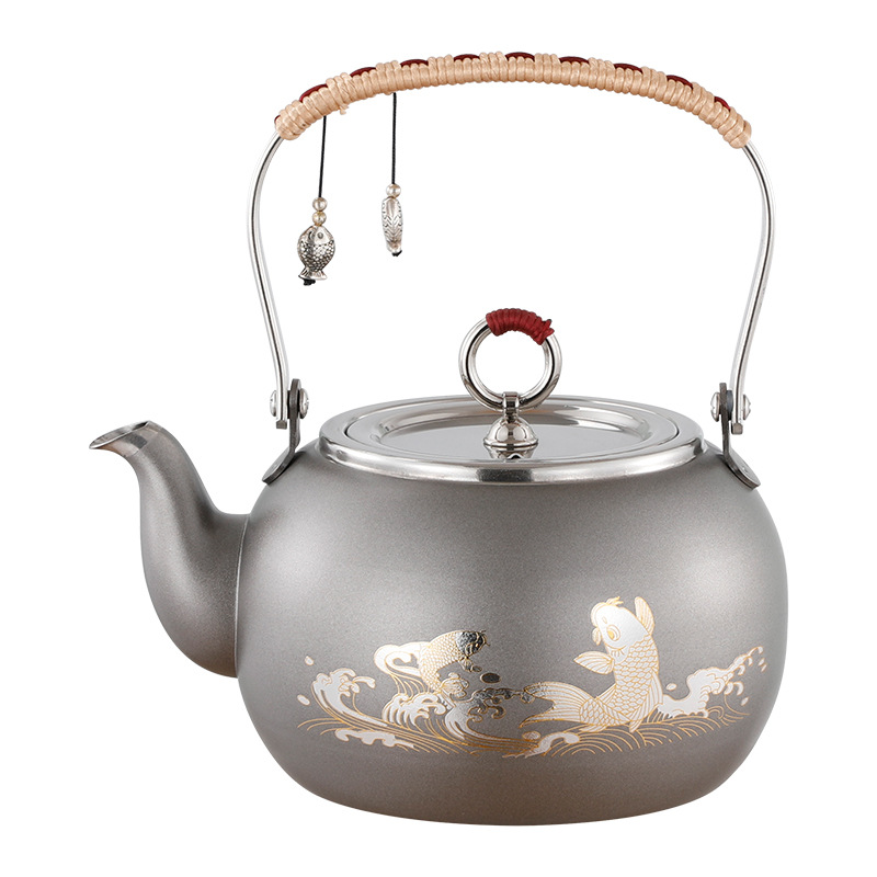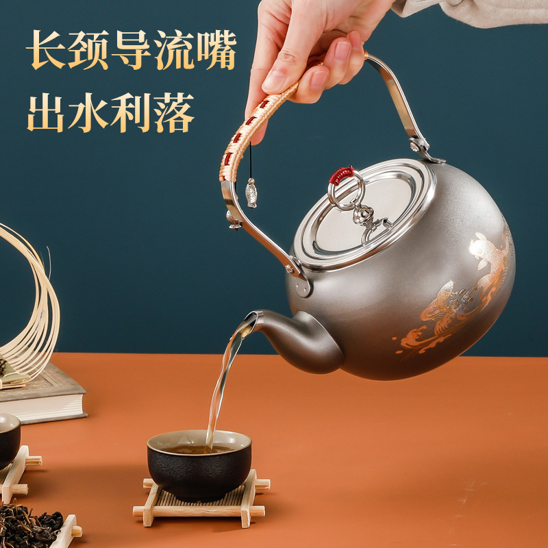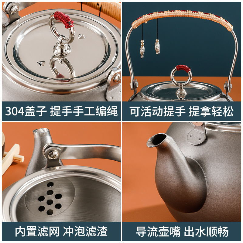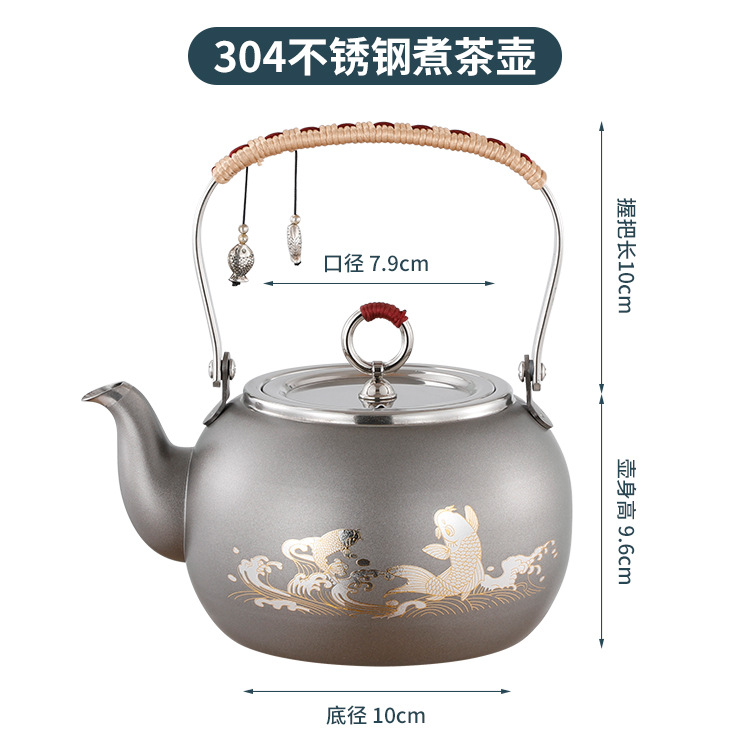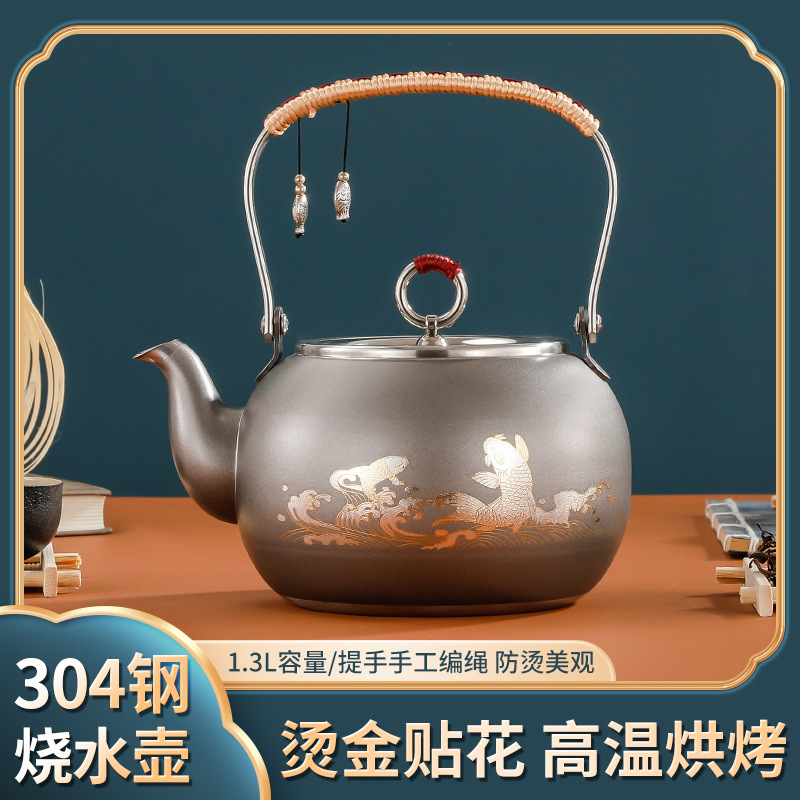Главная страница > Чайник из нержавеющей стали 304 с ручкой, 1,3 л, подходит для заваривания чая у плиты, для кипячения воды на открытом воздухе и заваривания чая, портативный дизайн, китайский стиль.