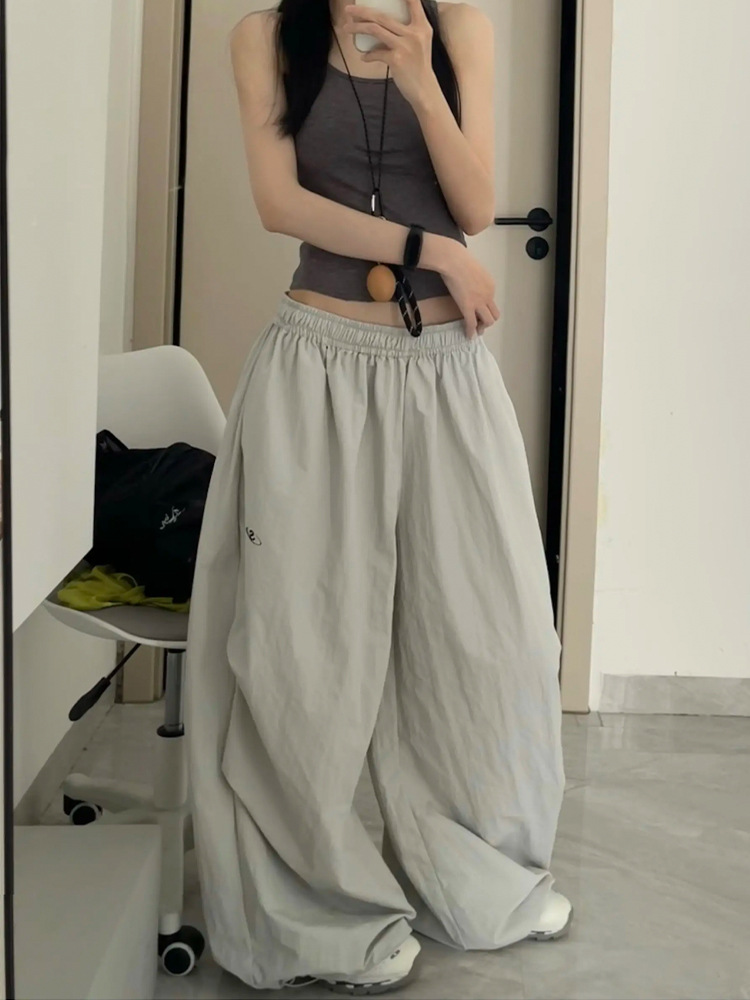 Летние тонкие сухие спортивные брюки женские свободные дикие тренды дизайн широкие ноги штанги
