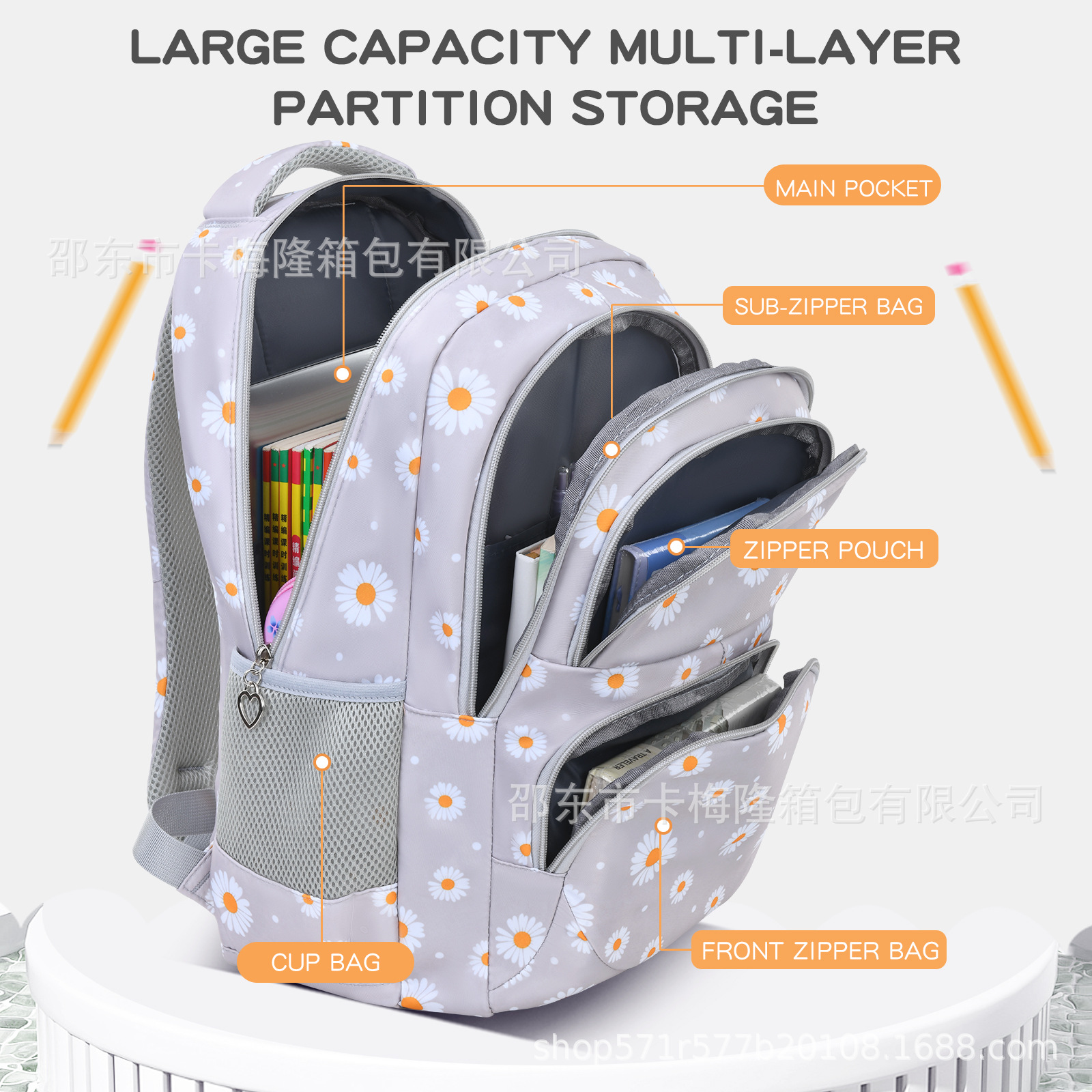 Главная страница > Трансграничный набор из трех предметов маленьких школьных ранцев с ромашками для девочек начальной, средней и старшей школы, вместительные и красивые рюкзаки для детей.
