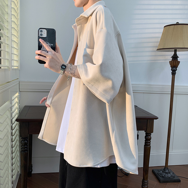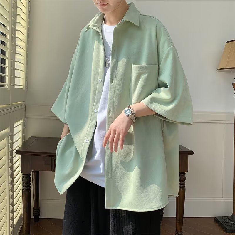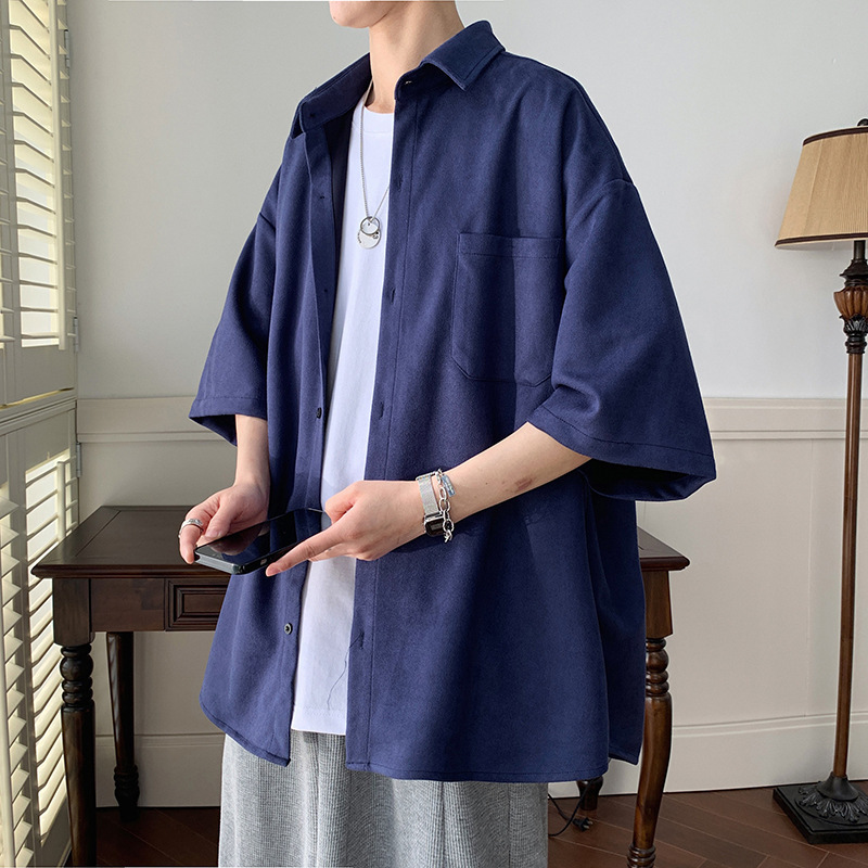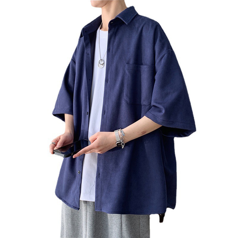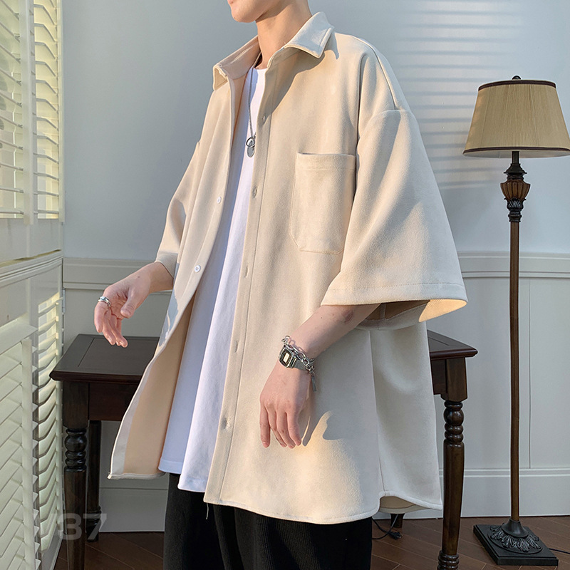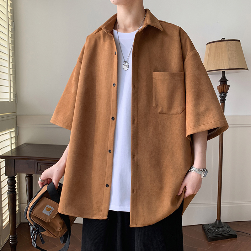 Главная страница > Замшевая рубашка с короткими рукавами, мужская летняя свободная повседневная рубашка в японском стиле в стиле ретро с половиной рукавов, американская уличная модная брендовая куртка