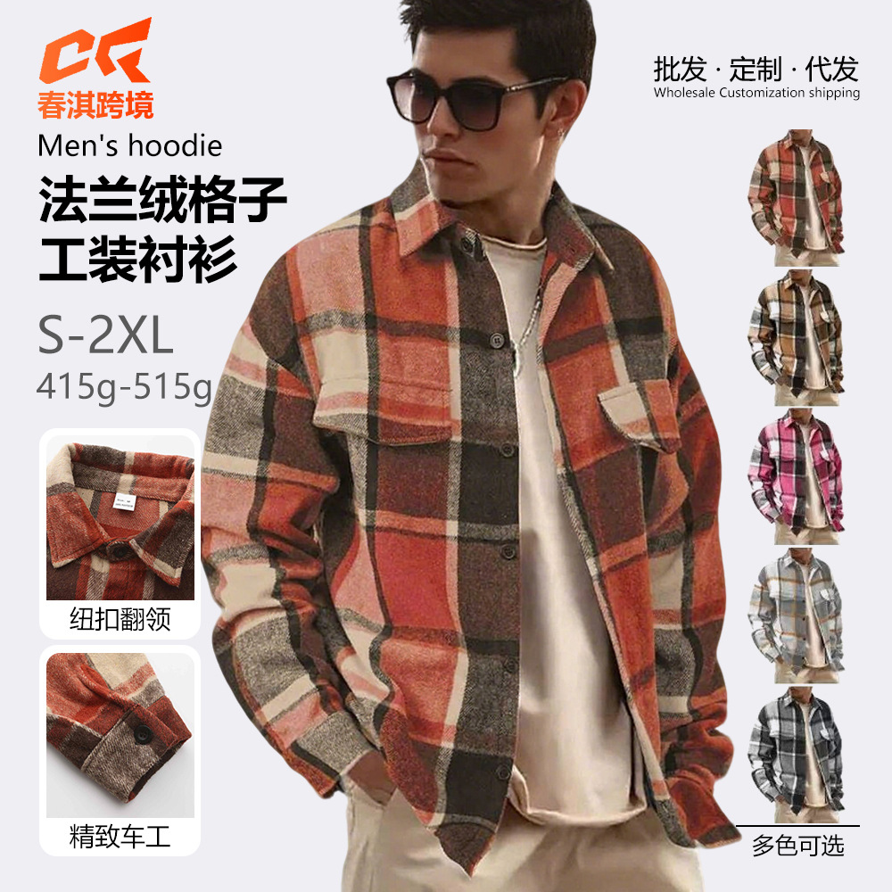25 Amazon Европейская и американская трансграничная TEMU элегантная клетчатая мужская рубашка с лацканами в стиле ретро, повседневная куртка с длинными рукавами