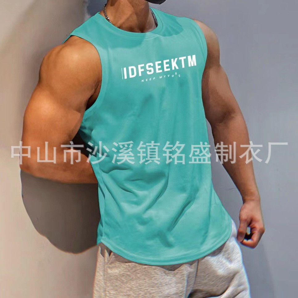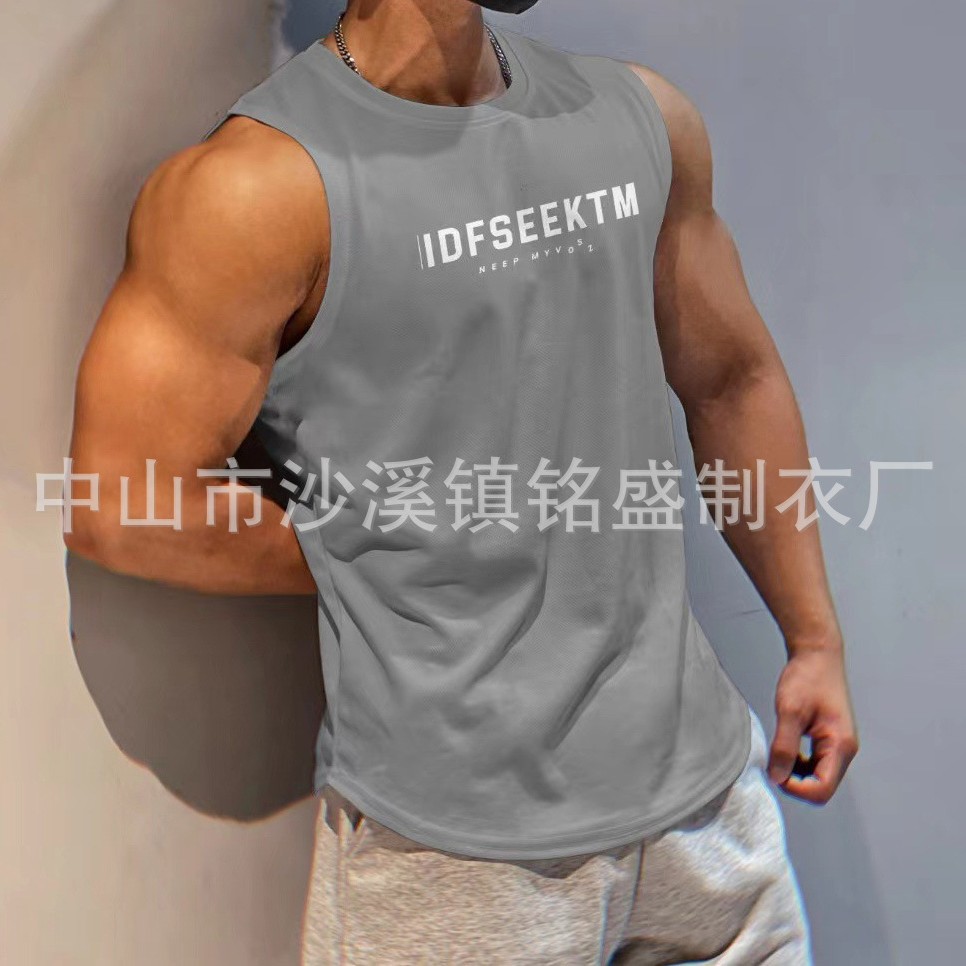 Главная страница > Мужская спортивная майка с индивидуальным дизайном, быстросохнущая, влагоотводящая, из сетчатой ткани, дышащая, без рукавов, для тренировок.