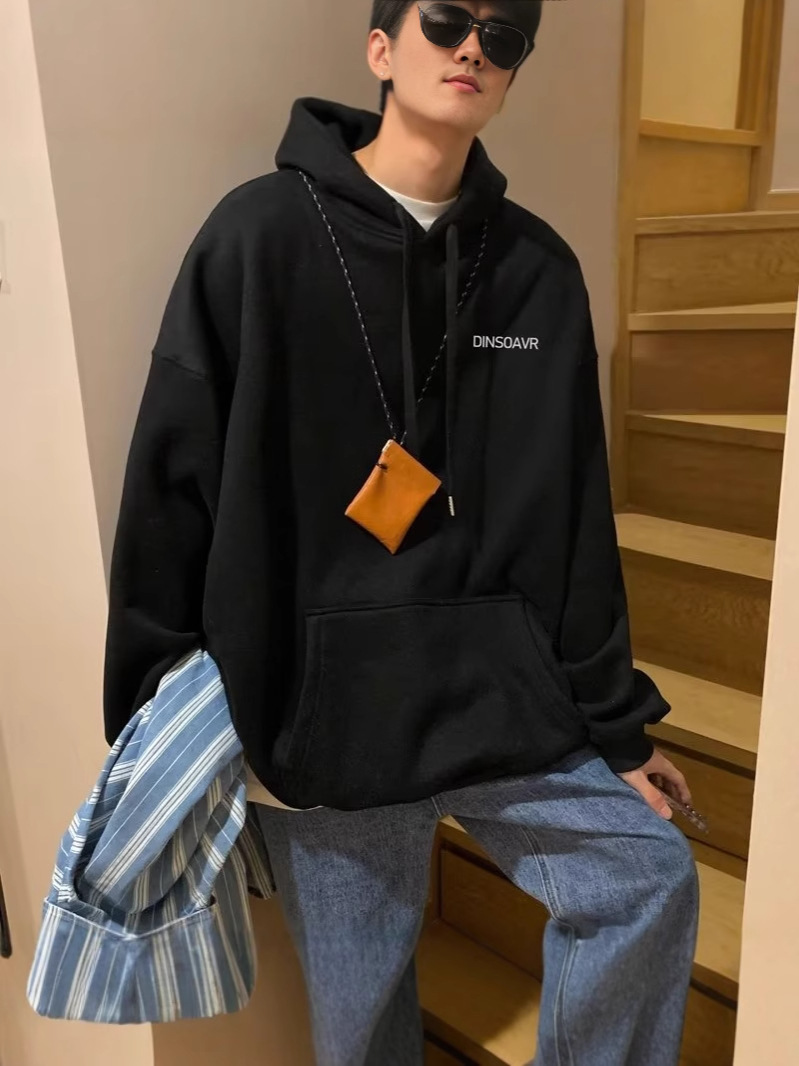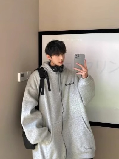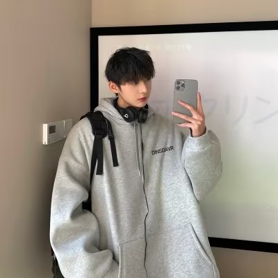 Главная страница > Толстовка с капюшоном в гонконгском стиле, мужская осенне-зимняя бархатная утолщенная куртка 2025 года, новая свободная куртка большого размера, модный топ