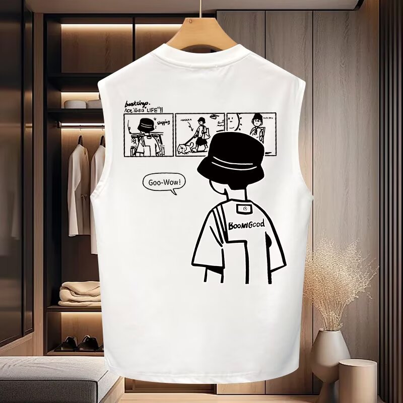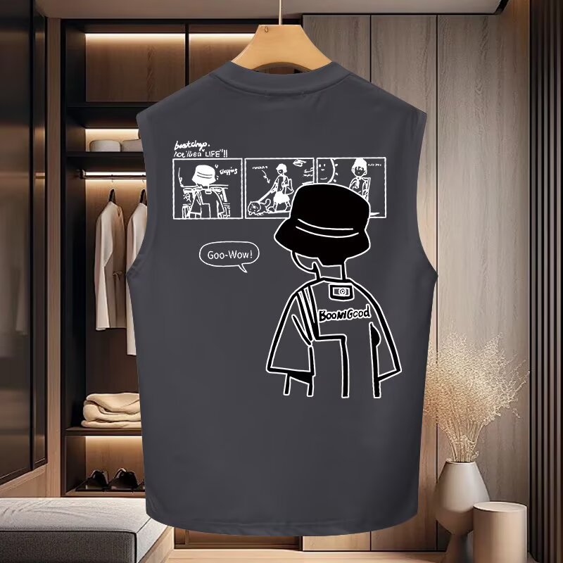 Главная страница > Летняя футболка без рукавов для мальчиков, новая тонкая дышащая свободная модная баскетбольная спортивная жилетка, верхняя майка с короткими рукавами