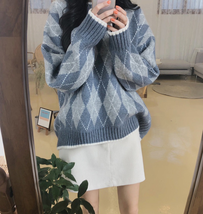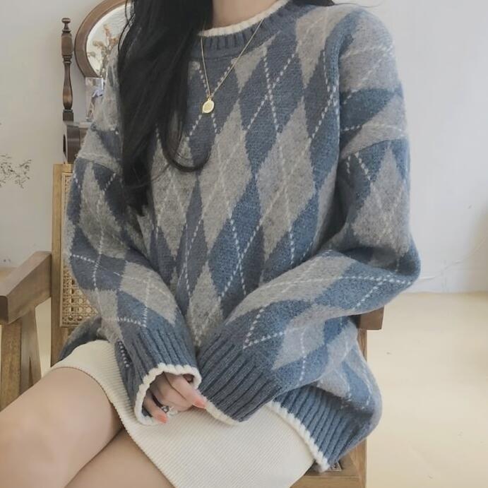 Главная страница > Внешняя торговля Женская осенне-зимняя новая вязаная Базовая рубашка в клетку с бриллиантами, верхняя одежда с длинным рукавом, Женский студенческий теплый свитер