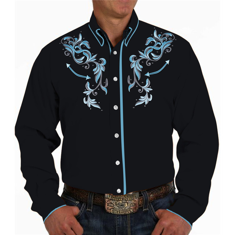 Новый стиль ретро мужская рубашка с длинными рукавами повседневная легкая мода узор рубашка топ 2024 AliExpress горячий мужчина