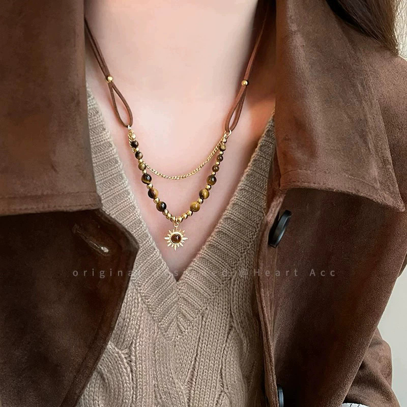 X2024 Ожерелье с камнем «Тигровый глаз» коричневого цвета