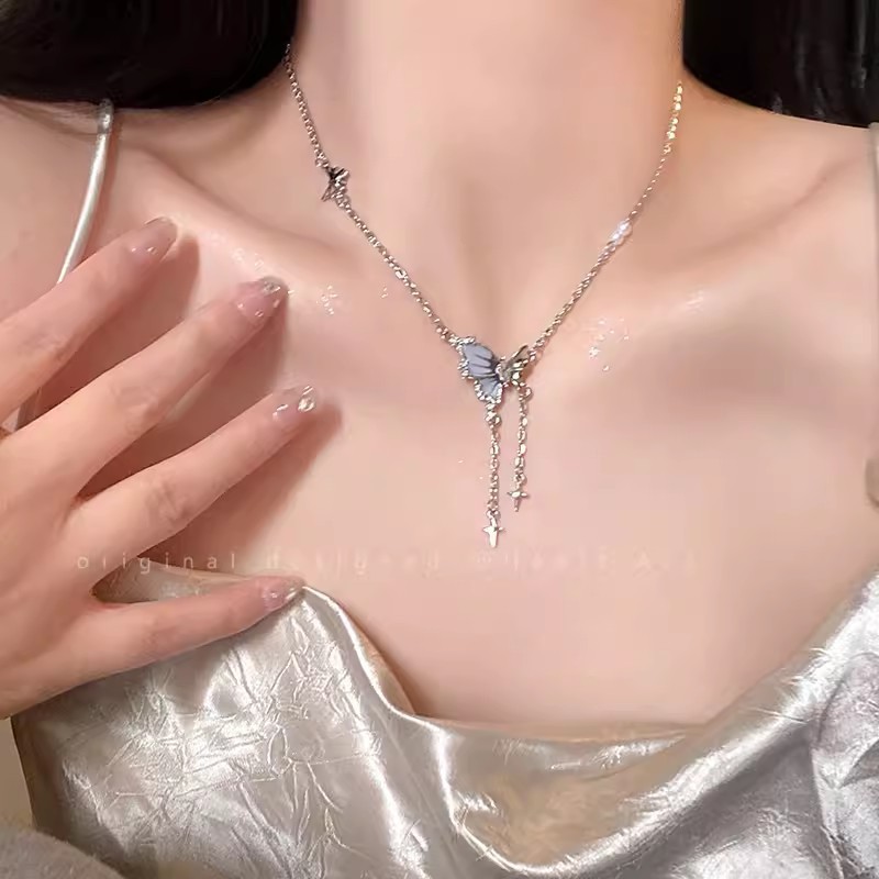 X1408 Серебряно-фиолетовое ожерелье-бабочка