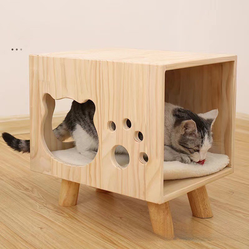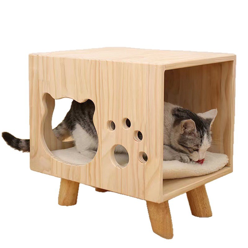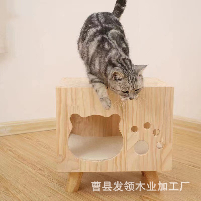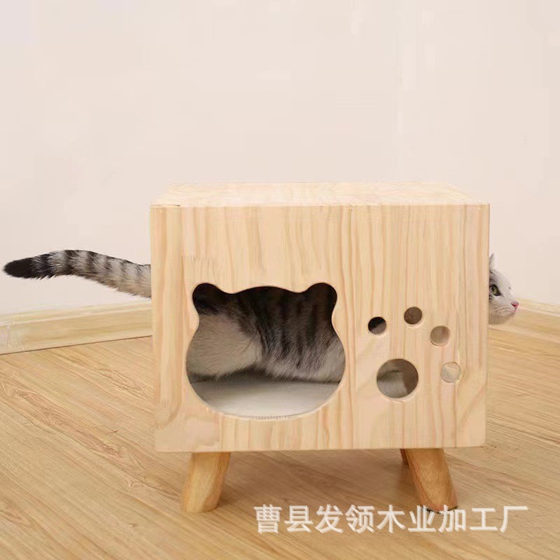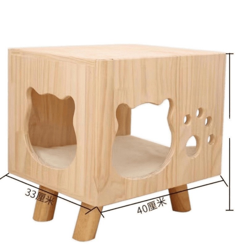Табурет для переобувания из цельного дерева, кошачье гнездо, прикроватная тумбочка, полузакрытое интегрированное гнездо для кошек, платформа для прыжков кошек, деревянный кошачий домик малого и среднего размера.