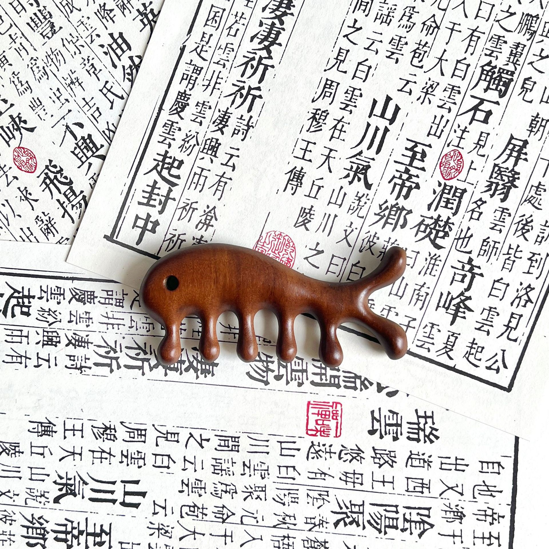 Массажная расческа из сандалового дерева для мужчин и женщин, утолщенная и расширенная расческа-меридиан с пятью зубцами, уход за волосами, уход за волосами и антистатический эффект.