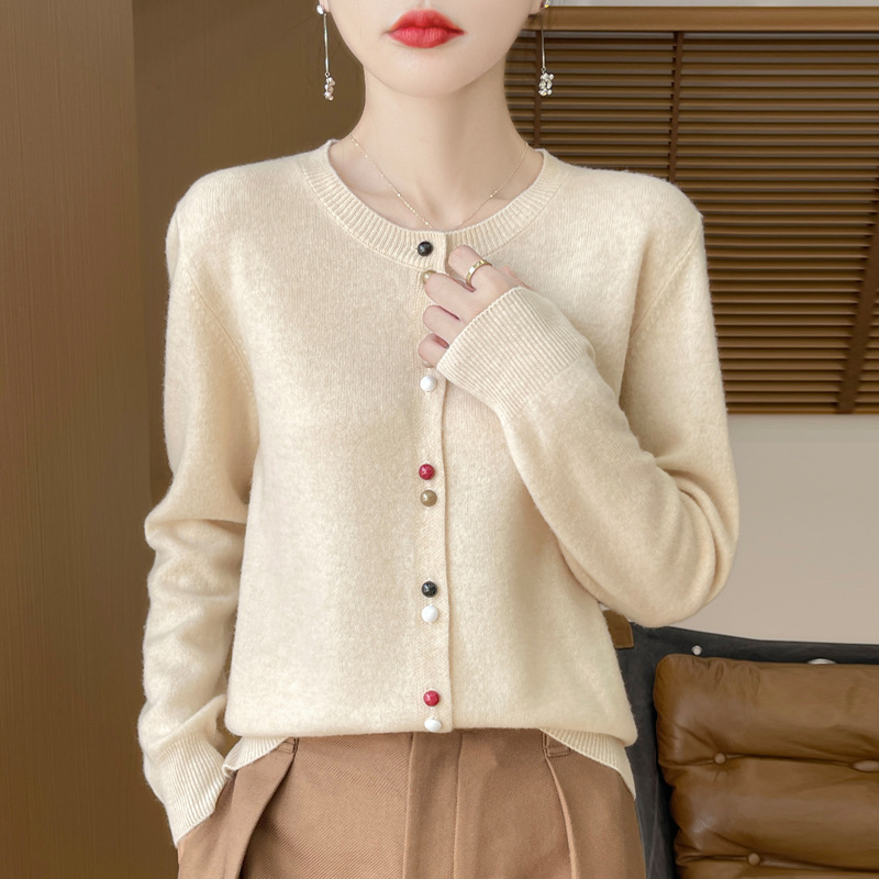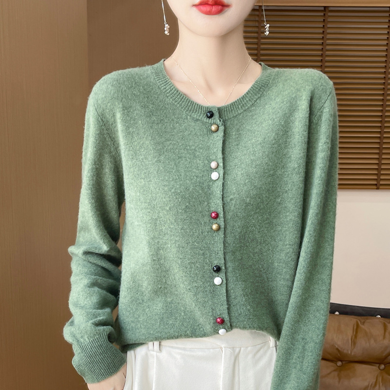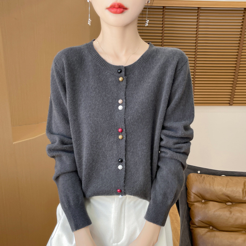 Главная страница > Оптовая продажа 2024 корейских иностранных пуговиц мягкий клейкий короткий свитер с круглым вырезом куртка женская весна и осень носить дикие оптом