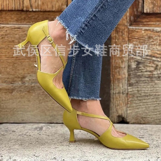 Женские туфли на высоком каблуке с острым носком и ажурной пряжкой, модель 316