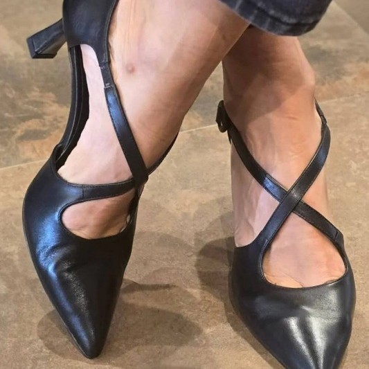 Главная страница > Женские туфли на высоком каблуке с острым носком и ажурной пряжкой, модель 316