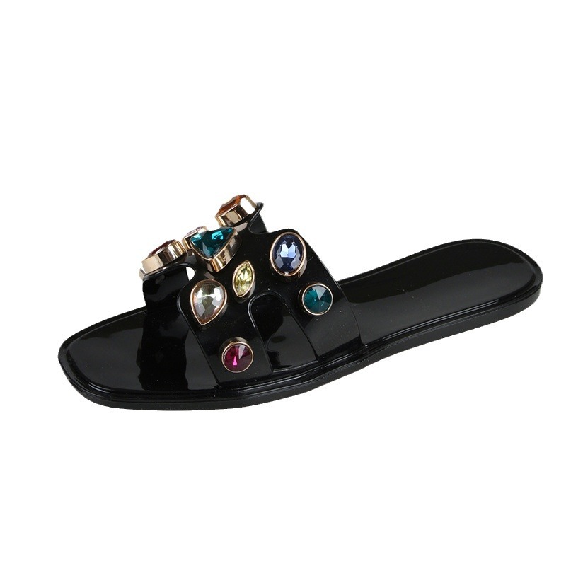 Главная страница > Летние новые цветные большие бриллиантовые тапочки женские AliExpress Amazon желе обувь хрустальные тапочки с плоским дном