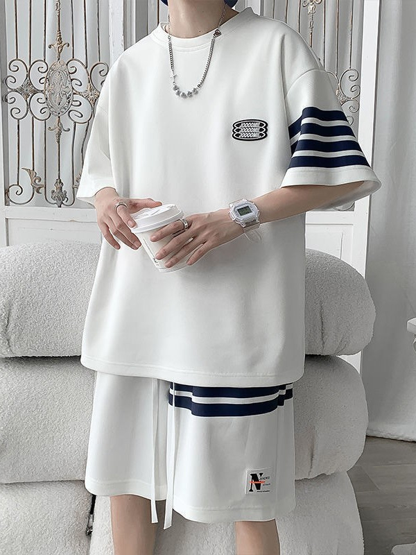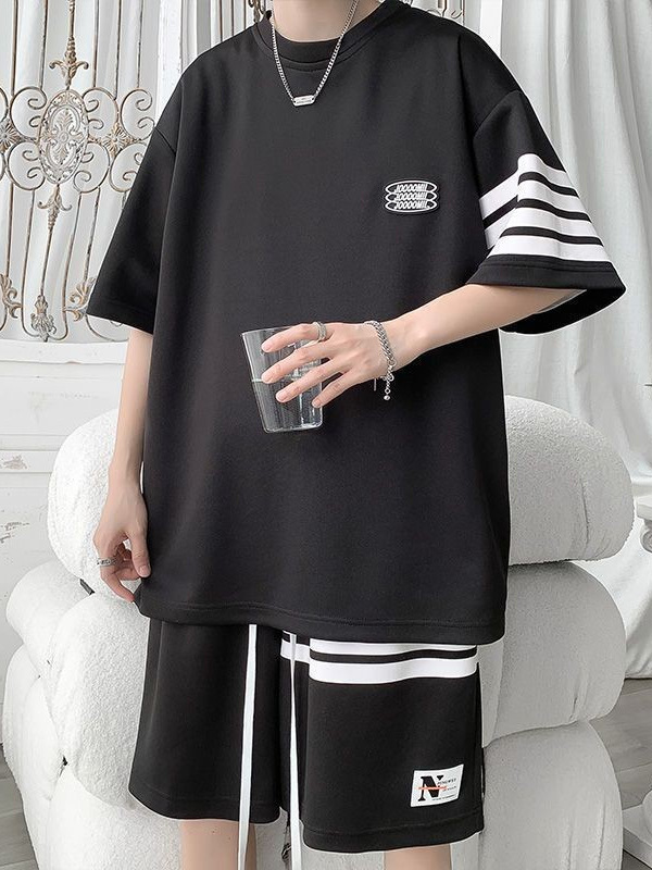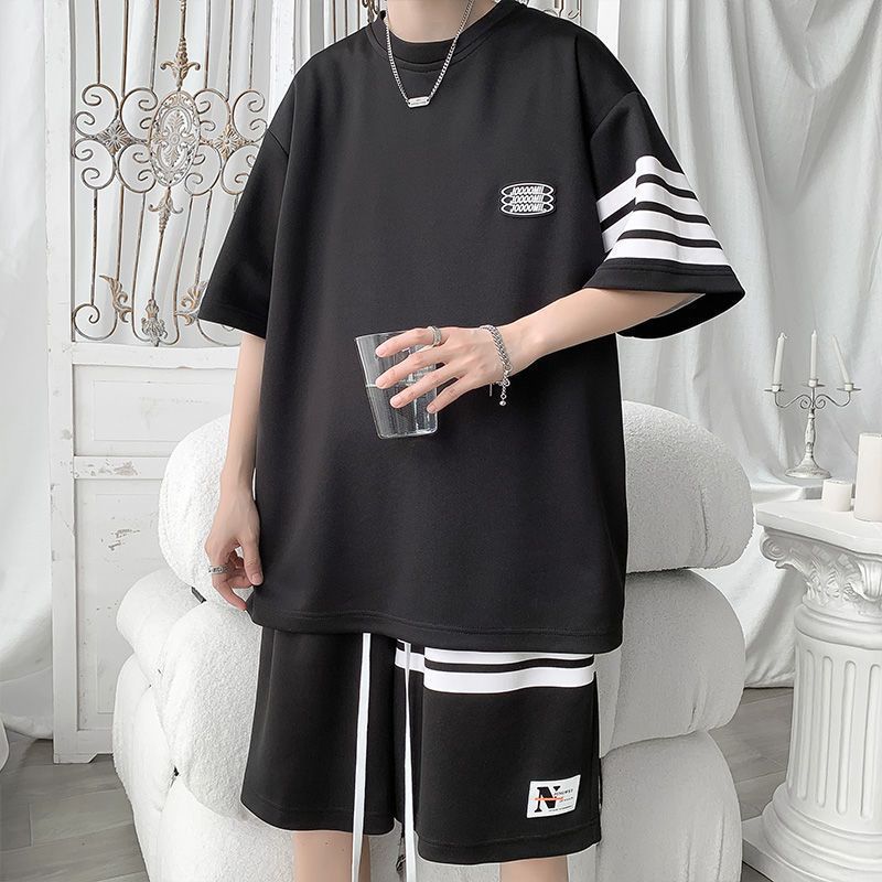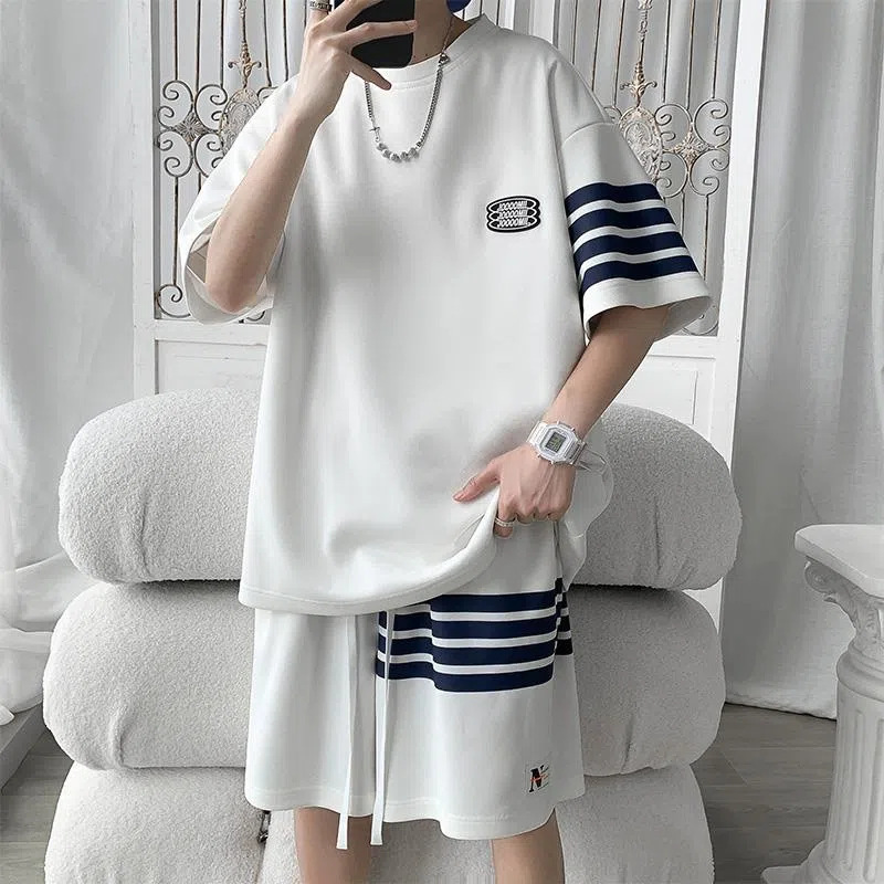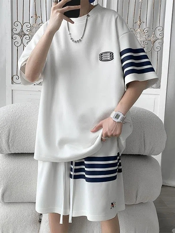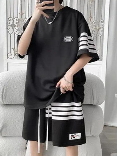 Главная страница > Спортивный костюм для мужчин Летняя тонкая свободная футболка с короткими рукавами повседневные шорты модный красивый полосатый набор