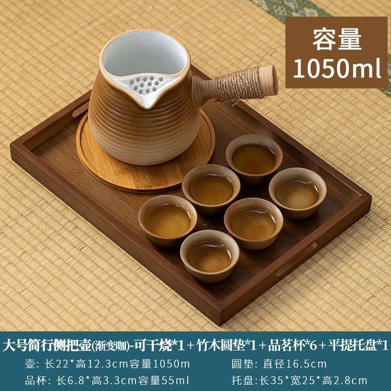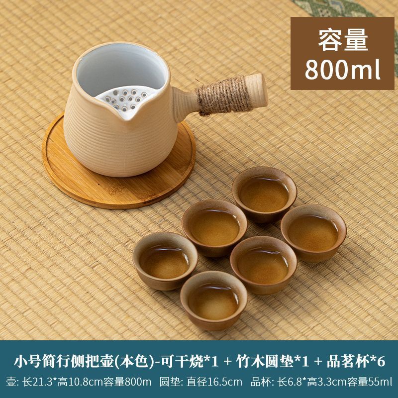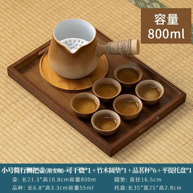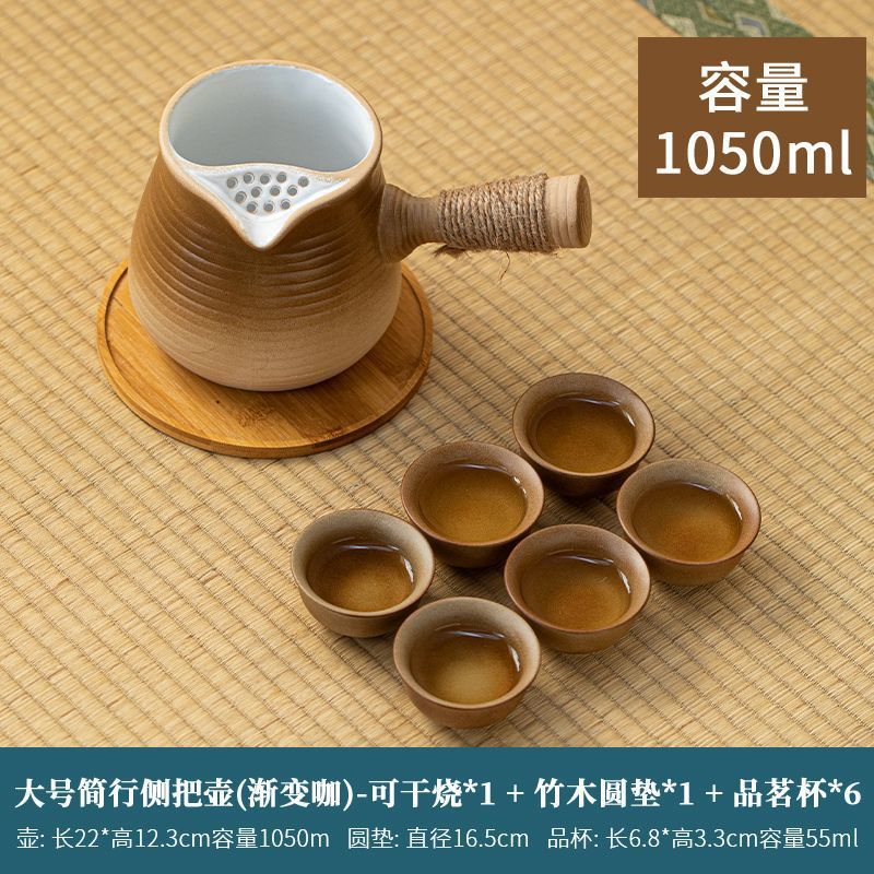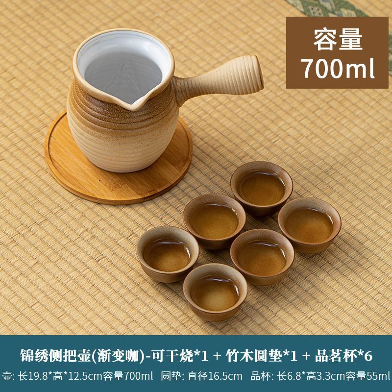 Красивый коричневый горшок с боковой ручкой, 700 мл + чашка для чая*6 [бесплатный бамбуковый коврик] --- Скидка сегодня