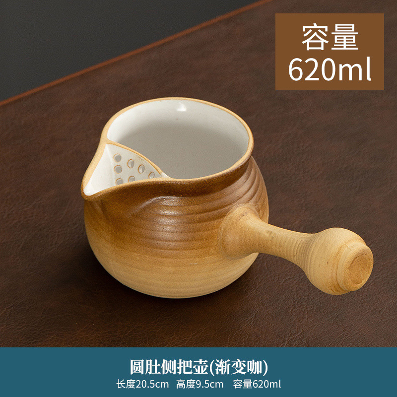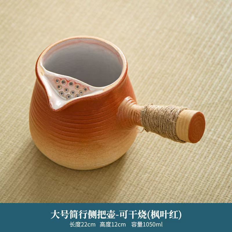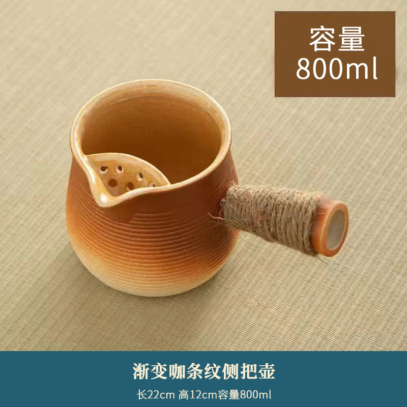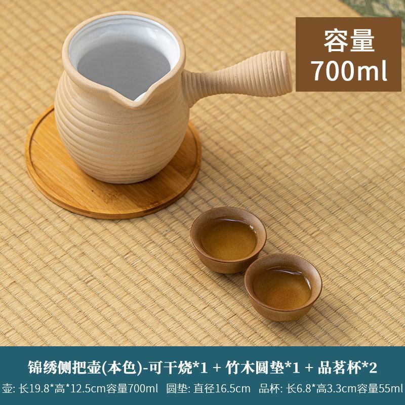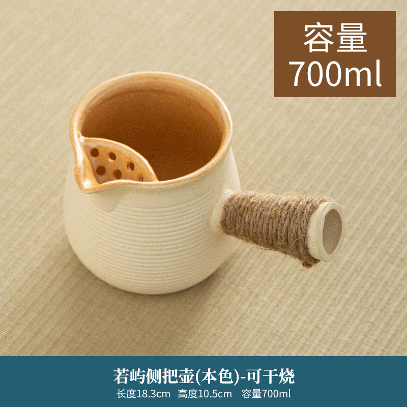 Красивый коричневый горшок с боковой ручкой, 700 мл + чашка для чая*6 [бесплатный бамбуковый коврик] --- Скидка сегодня