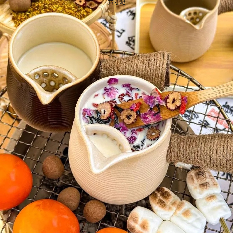Коричневая чудесная кастрюля с боковой ручкой, 700 мл + чашка для чая*2 [бесплатный бамбуковый коврик] --- Скидка сегодня