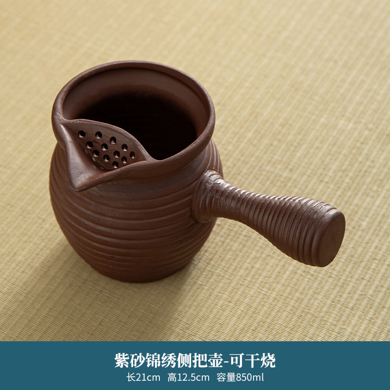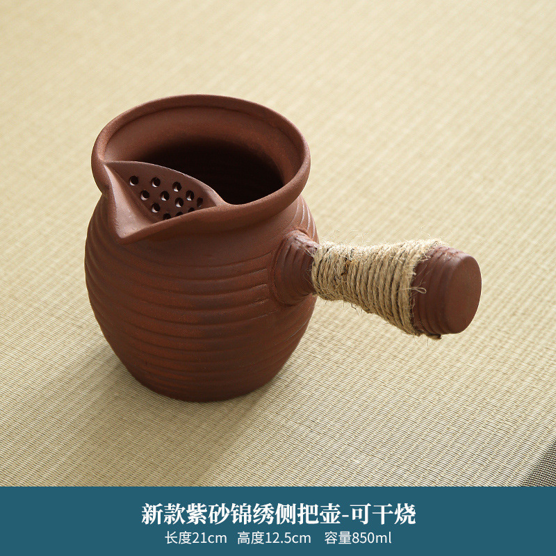【Zisha】Изысканный чайник с боковой ручкой, 850 мл — стиль с конопляной веревкой — Скидка сегодня
