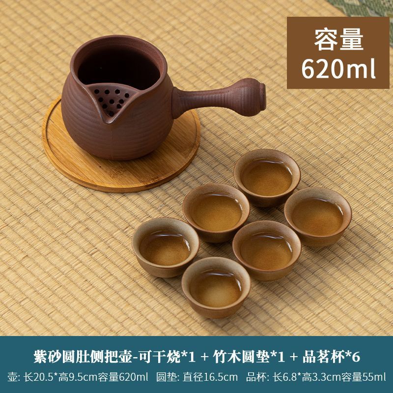 Круглый горшок из фиолетовой глины, 620 мл + чашка для чая * 6 [бесплатный бамбуковый коврик] --- цена со скидкой сегодня