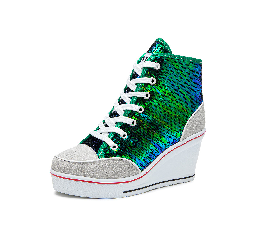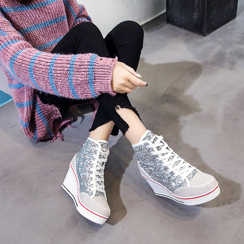 Главная страница > 2021 новая корейская версия 8cm высокая обувь на холсте на туфлях на каблуках с блестками на шнуровке