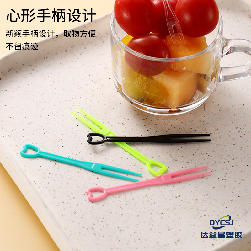 Одноразовые фрукты в форме сердца вилка независимая упаковка прозрачная коммерческая вилка креативная любовь вилка пищевой пластиковый знак