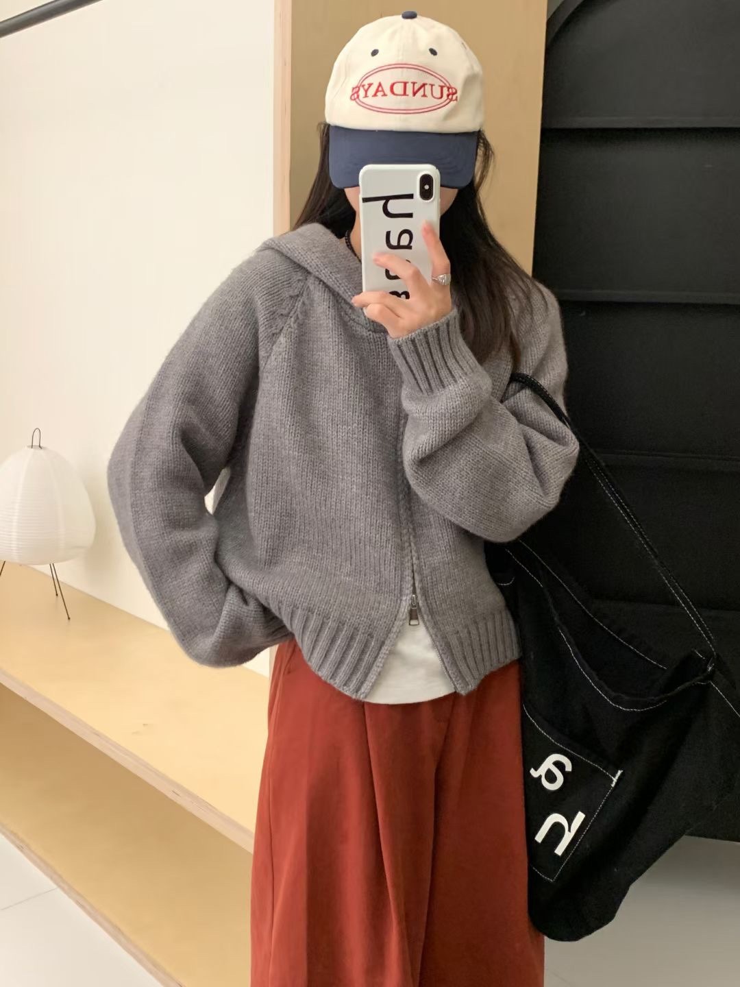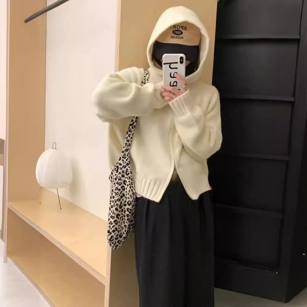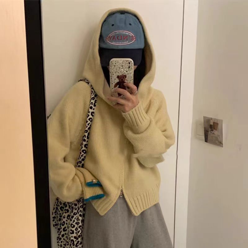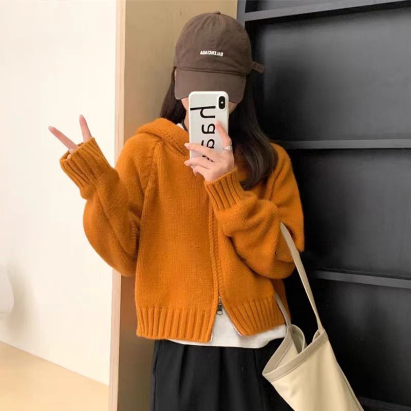 Главная страница > Женский стиль колледжа новый свободный короткий свитер на молнии с капюшоном женский 2024 осень и зима